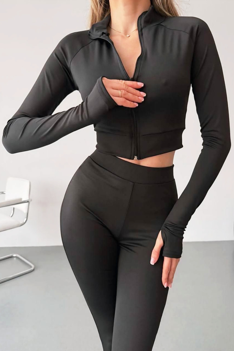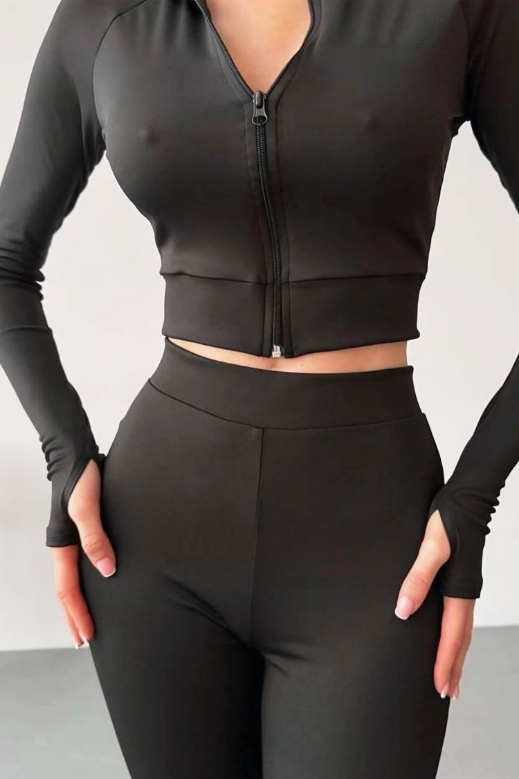 - Majica je kratke duljine i ima otvor za palac, a tajice imaju visoki, elastični struk.