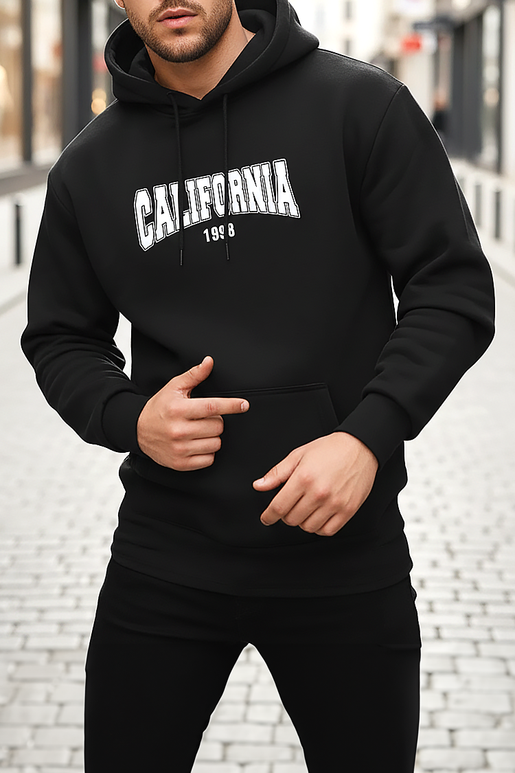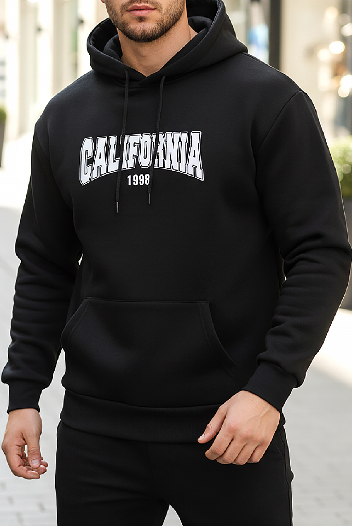 - Praktična muška dukserica s printom u crnoj boji, prikladna za razne modne kombinacije.