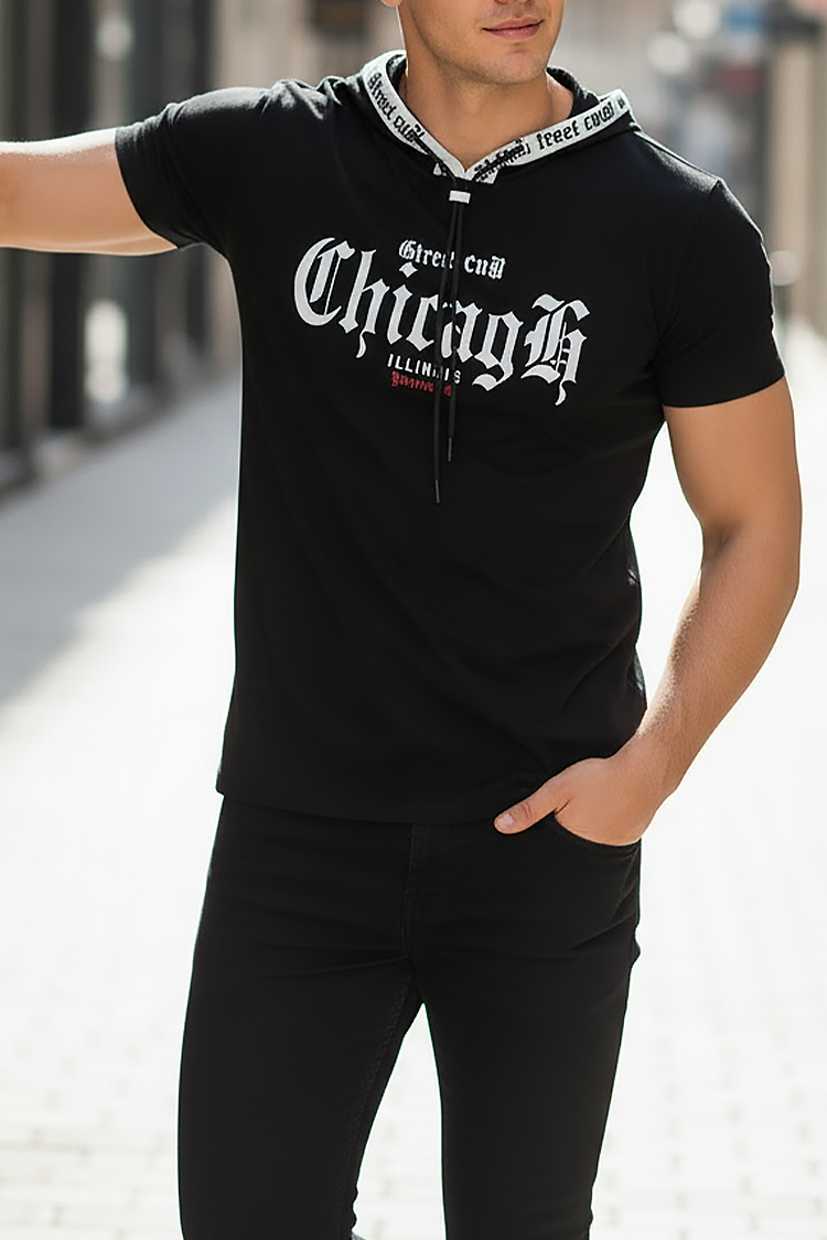 - Moderna muška majica udobnog kroja, kapuljačom na vezice i printom, prikladna za svakodnevni život, šetnju ili kao dodatak vašem sportskom izgledu.