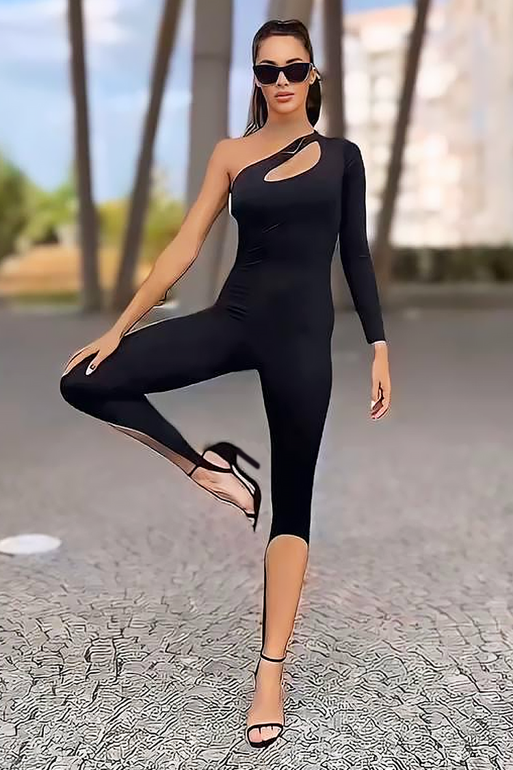 - Model ima seksi kroj na tijelu, jedan rukav, izrezane detalje i crnu boju.