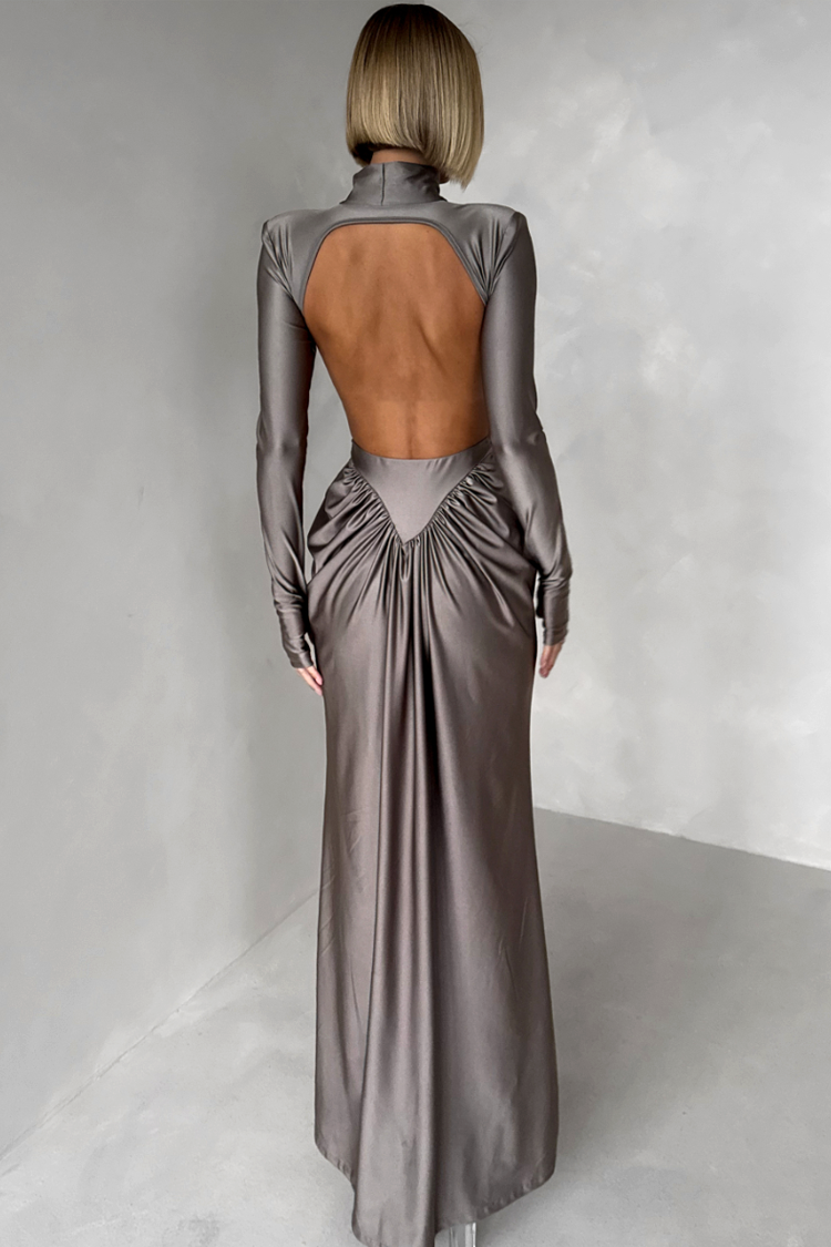 - Model ima duge rukave, elegantan kroj, spektakularan komplet i gola leđa.