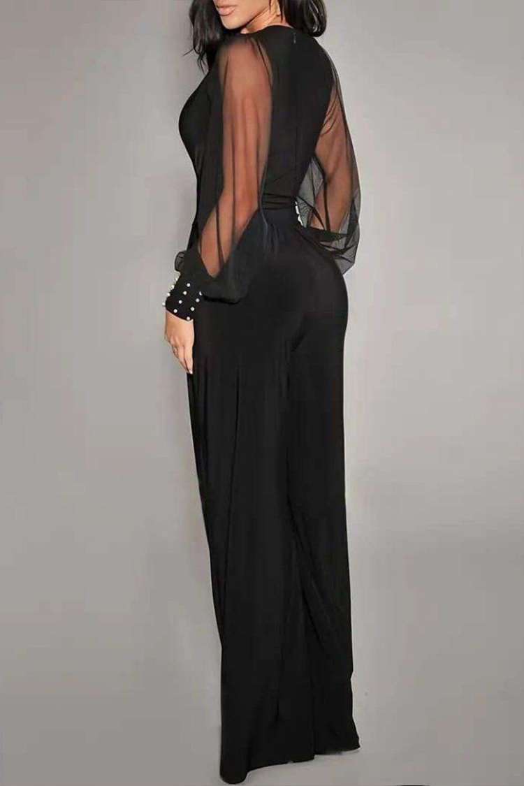 - Model ima široki kroj, duboki V-izrez i široke prozirne rukave.