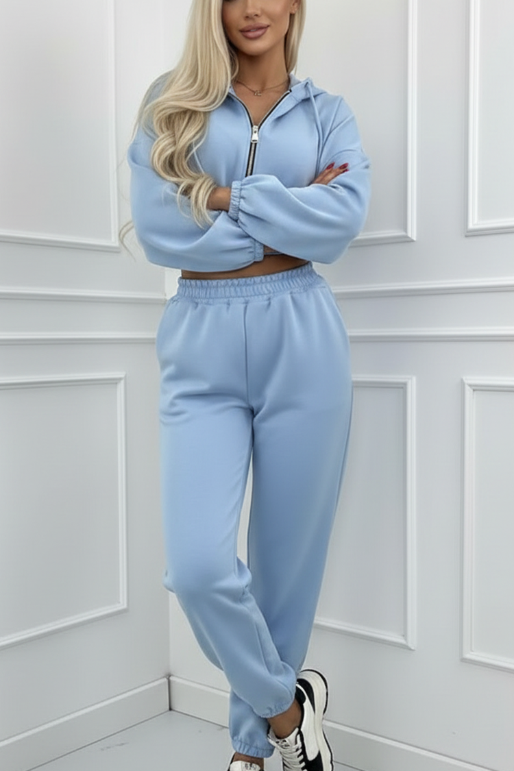 - Ženski dvodijelni sportski set trendi dizajna i svijetloplave boje.