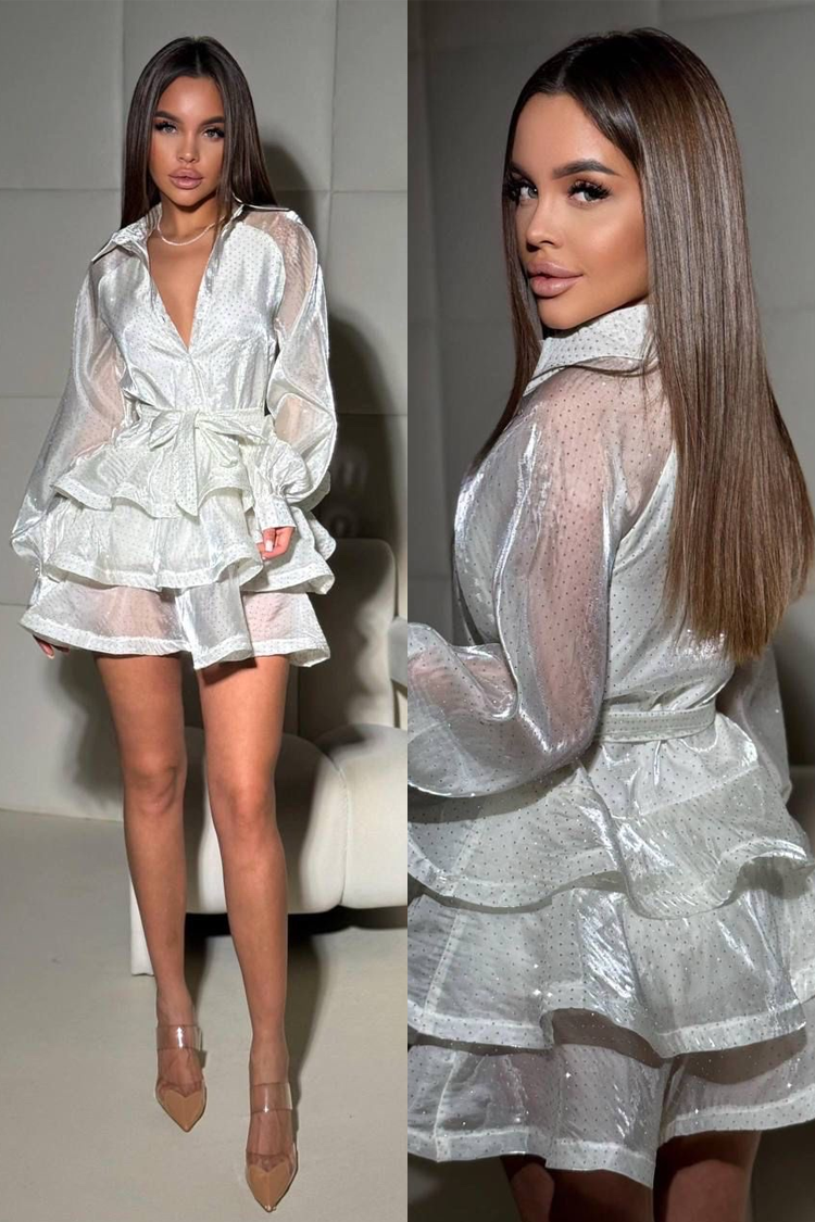 - Model ima spektakularan volumen i sjajne, dekorativne elemente.