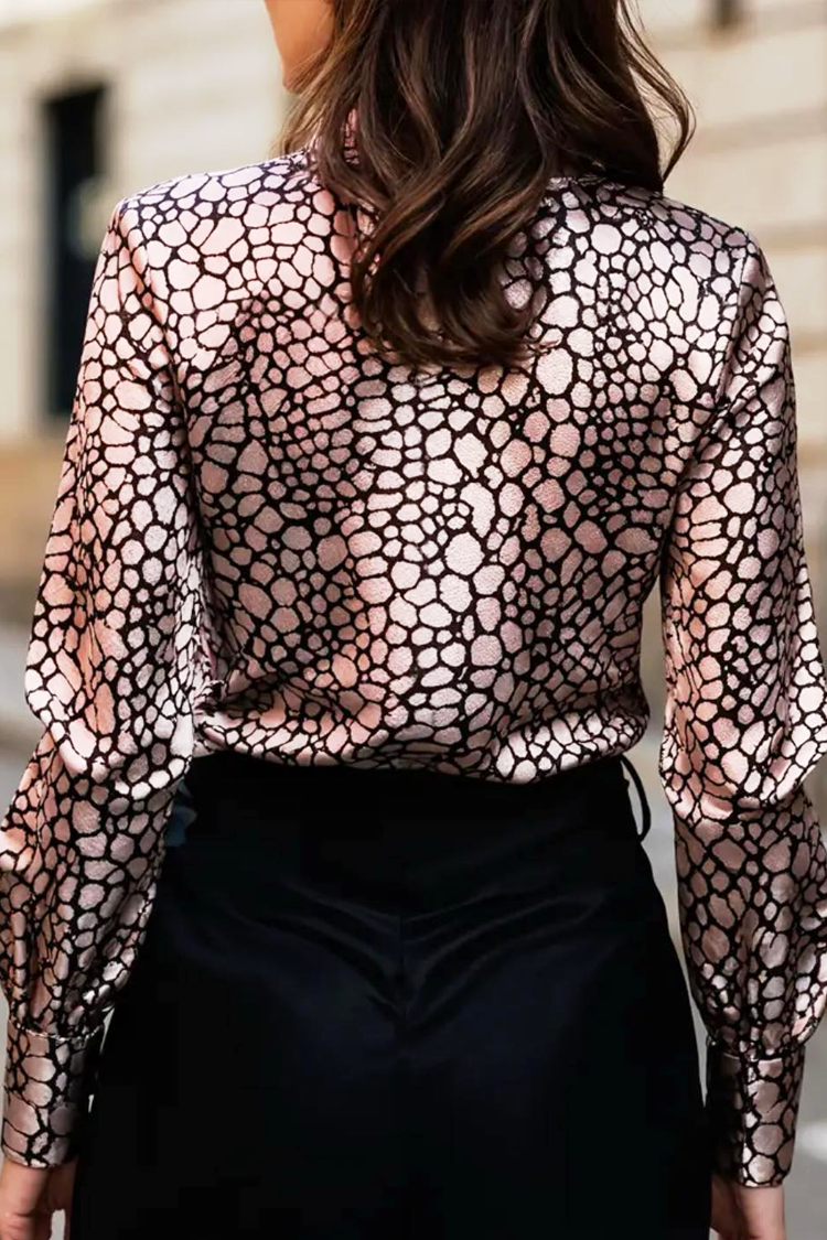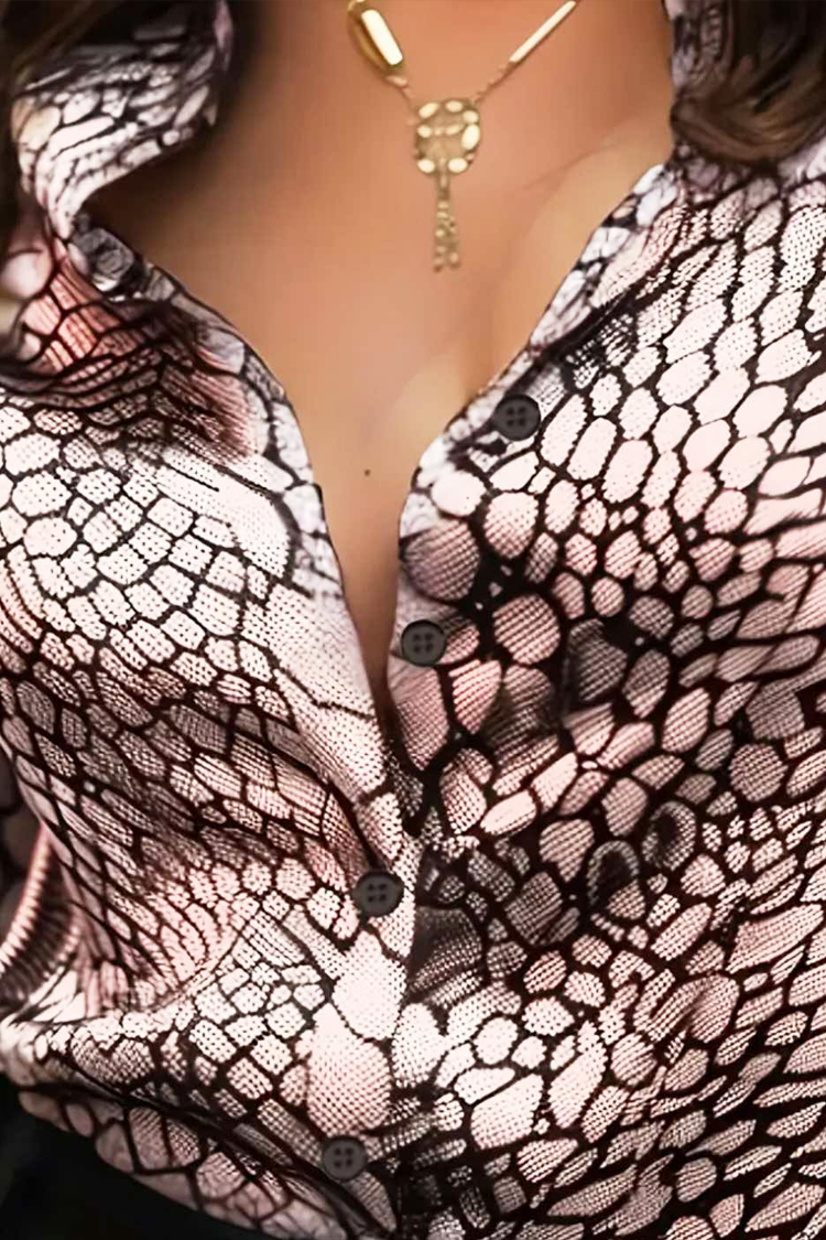 - Košulja ima duge rukave i standardno kopčanje na gumbe po cijeloj duljini, ovratnik i zmijski uzorak.