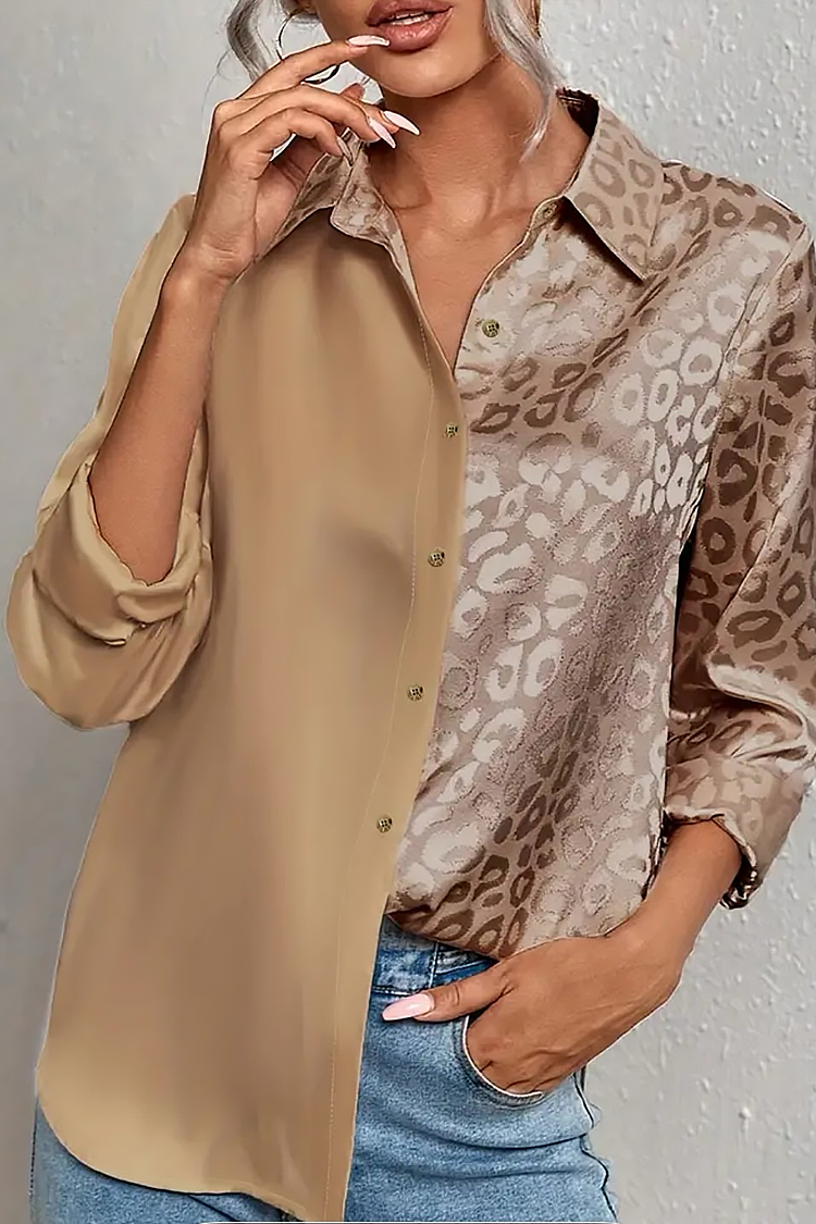 - Model ima duge rukave, elegantan kroj, ovratnik, gumbe i kontrastni leopard uzorak.