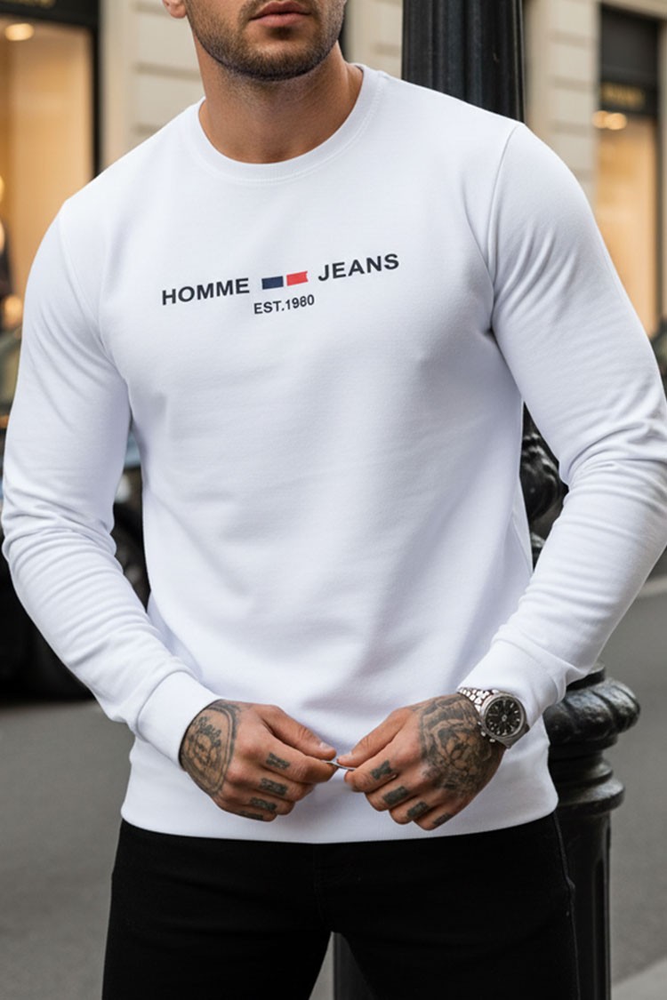 - Osnovni model muške bluze s jednobojnim uzorkom, dugim rukavima i printom, prikladan za svakodnevni život.