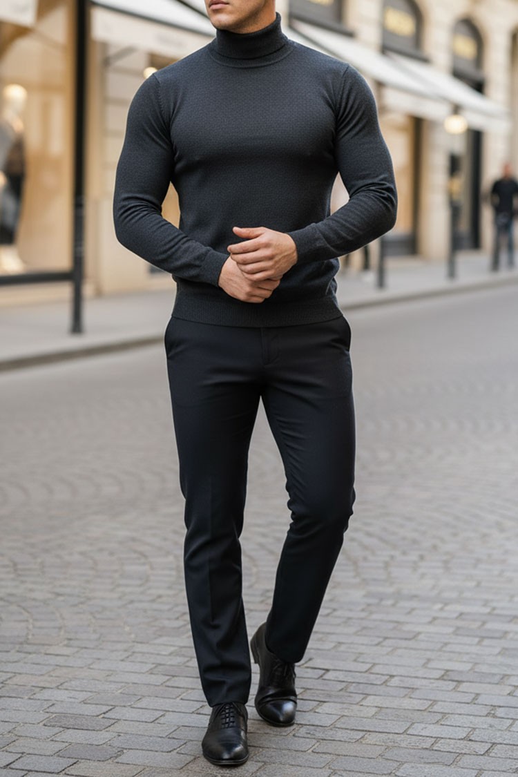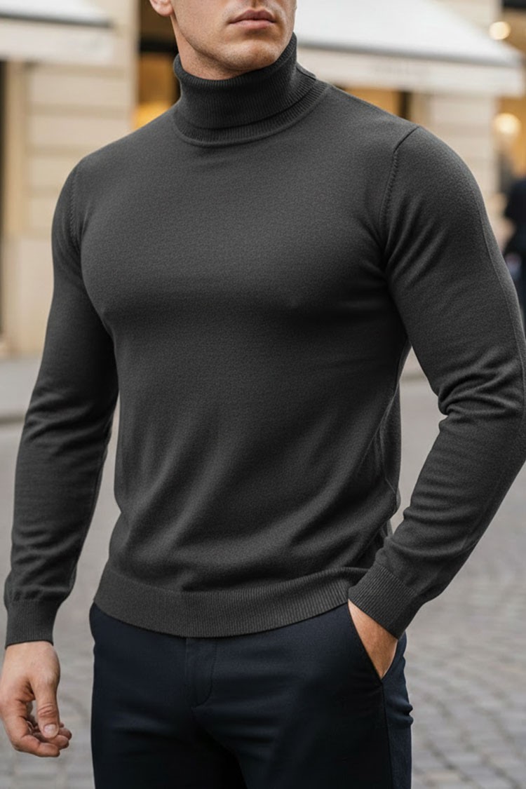 - Elegantni muški džemper s polo ovratnikom i pripijenim krojem u sivoj boji.