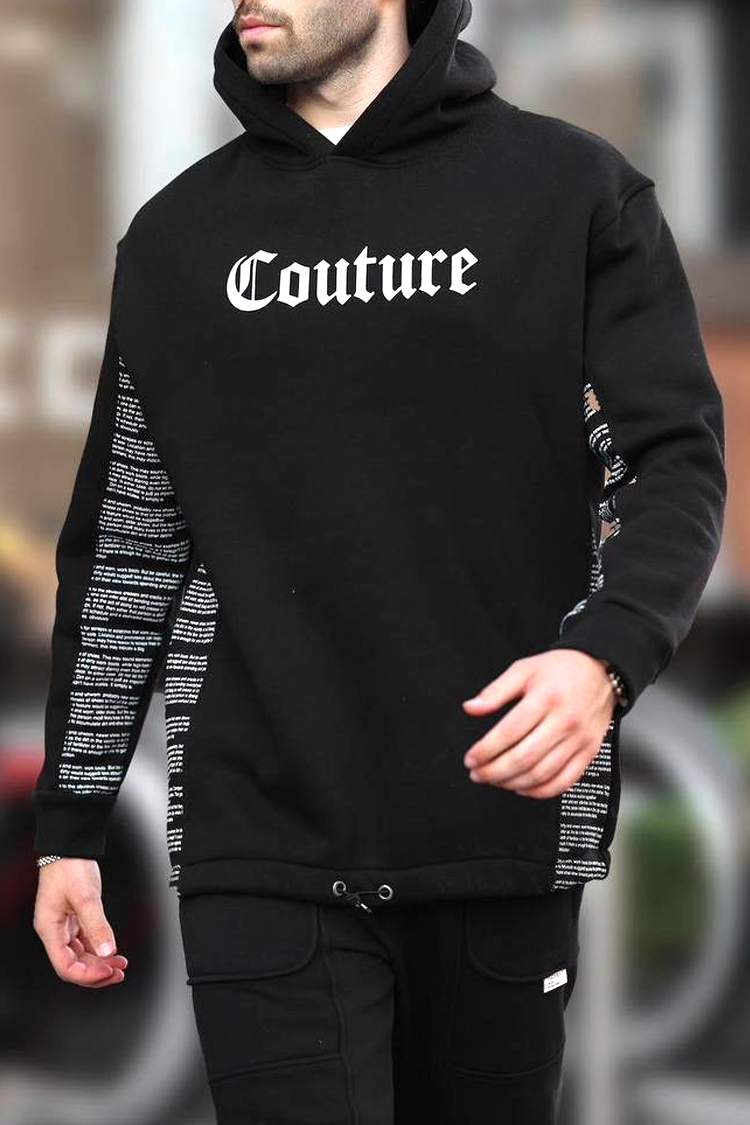 - Praktična muška majica s kapuljačom u klasičnoj crnoj boji s prepoznatljivim, kontrastnim natpisom, prikladna za svakodnevni život ili šetnju.