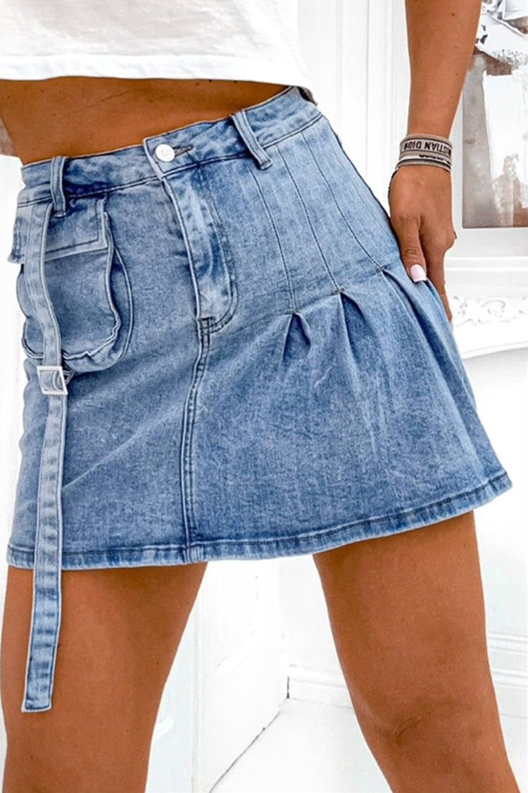 - Moderna suknja-hlače s gumbima i kratkom duljinom, izrađene od visokokvalitetnog trapera, prikladne za razne prigode.