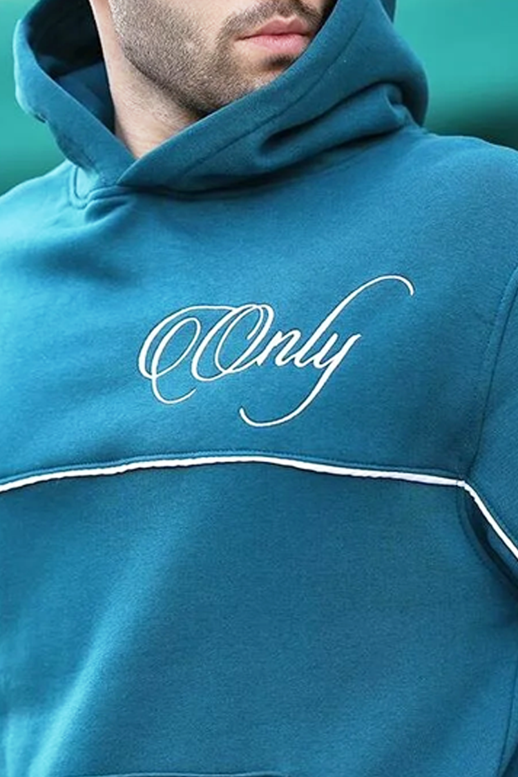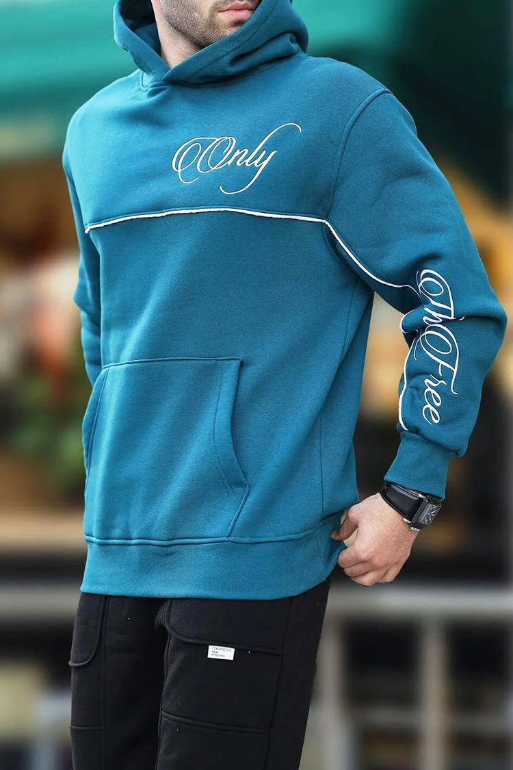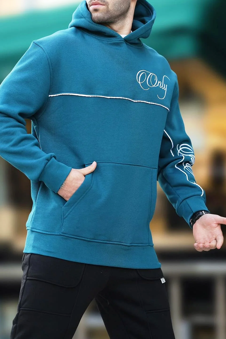 - Praktična muška dukserica s kapuljačom u petrol boji, prikladna za svakodnevni život ili šetnju.