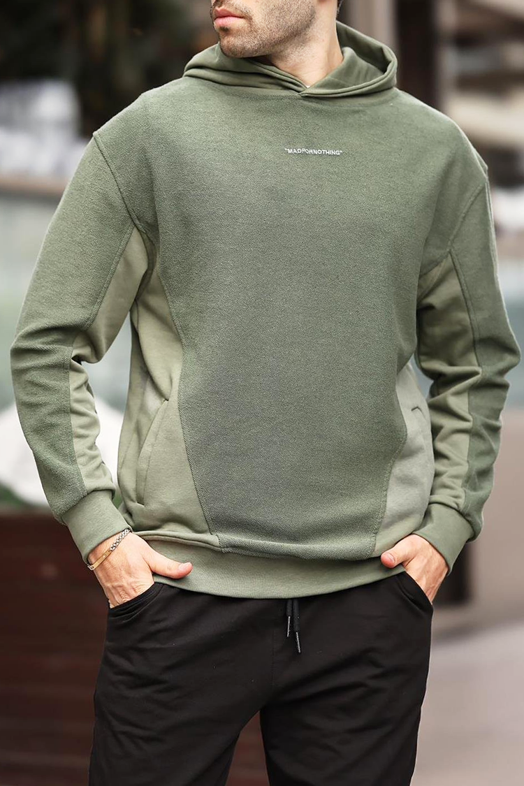 - Moderna muška dukserica s kapuljačom čistog dizajna i kontrastnim panelima koji naglašavaju siluetu.