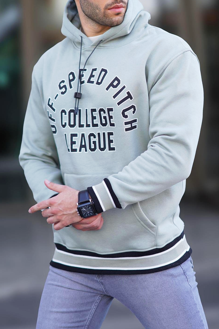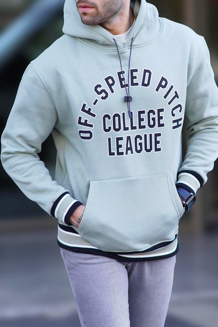 - Praktična muška dukserica s kontrastnim natpisom, kapuljačom s vezicama i maksi džepom u mint boji.