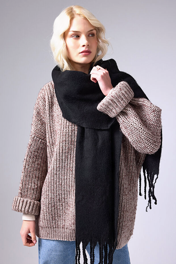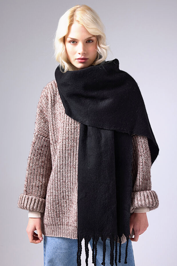 - Model ženskog šala u jednobojnom uzorku koji će savršeno upotpuniti vaš moderan izgled.
