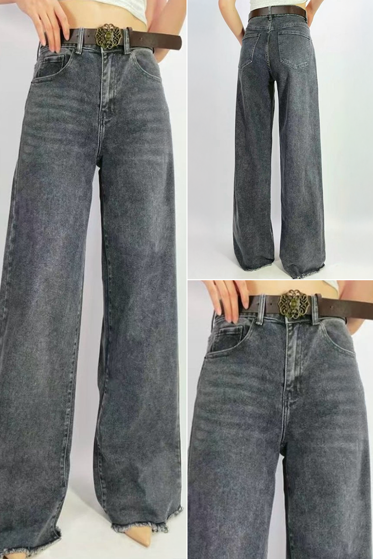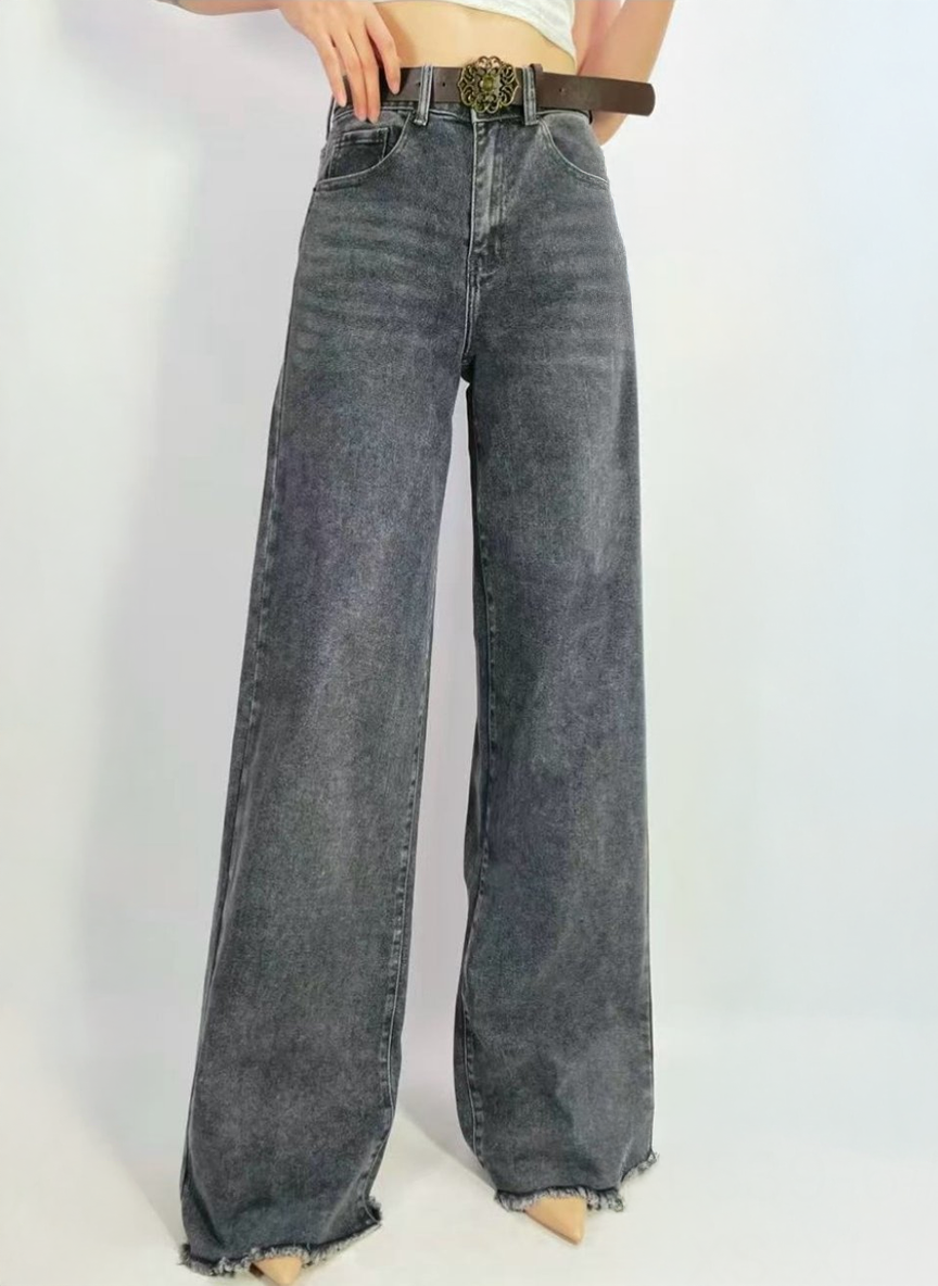 - Model ima visoki struk, široke nogavice, bočne džepove i atraktivan remen.
