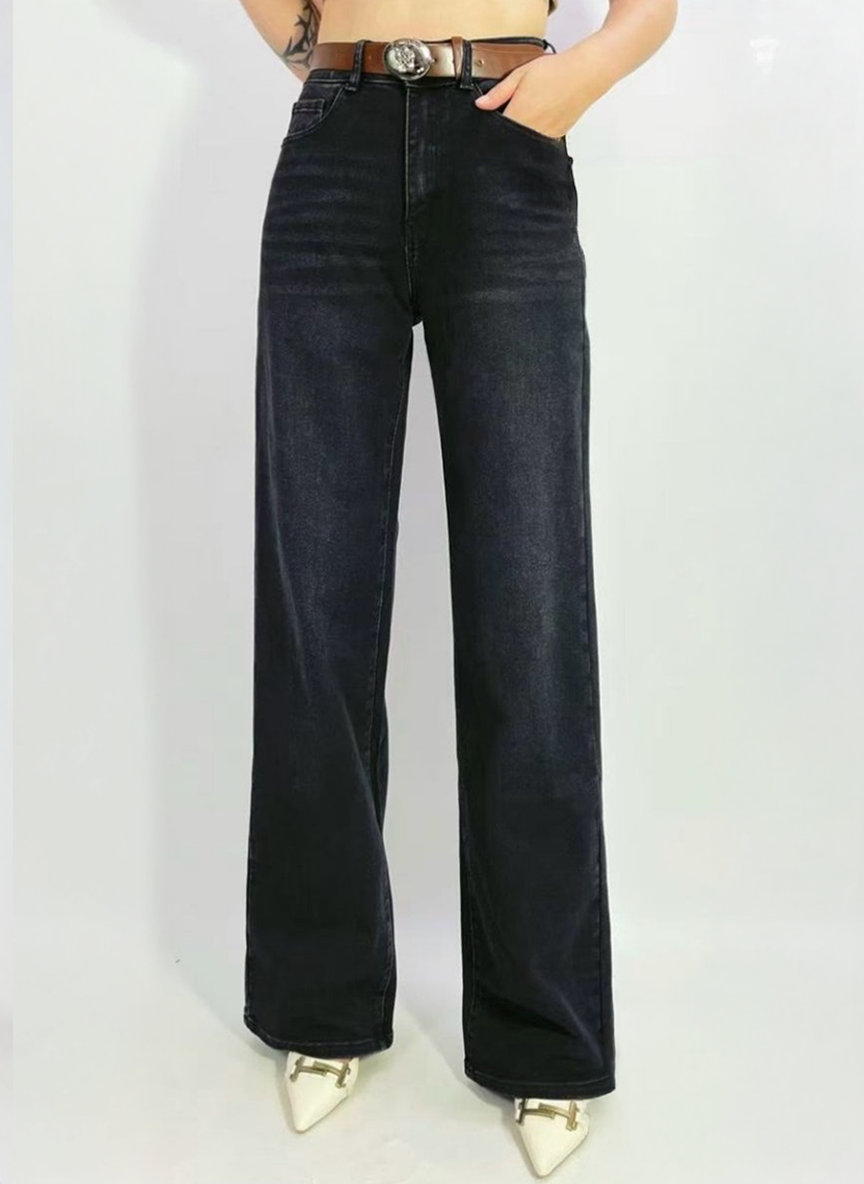 - Model ima visoki struk, široke nogavice, bočne džepove i atraktivan remen.