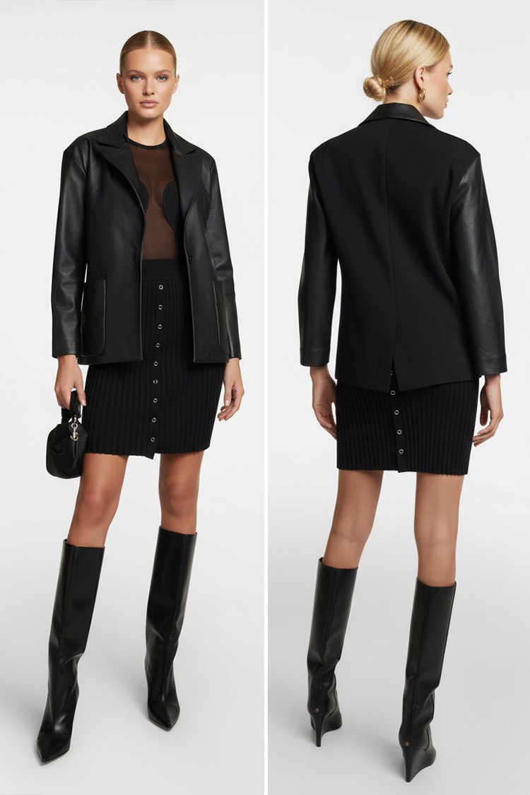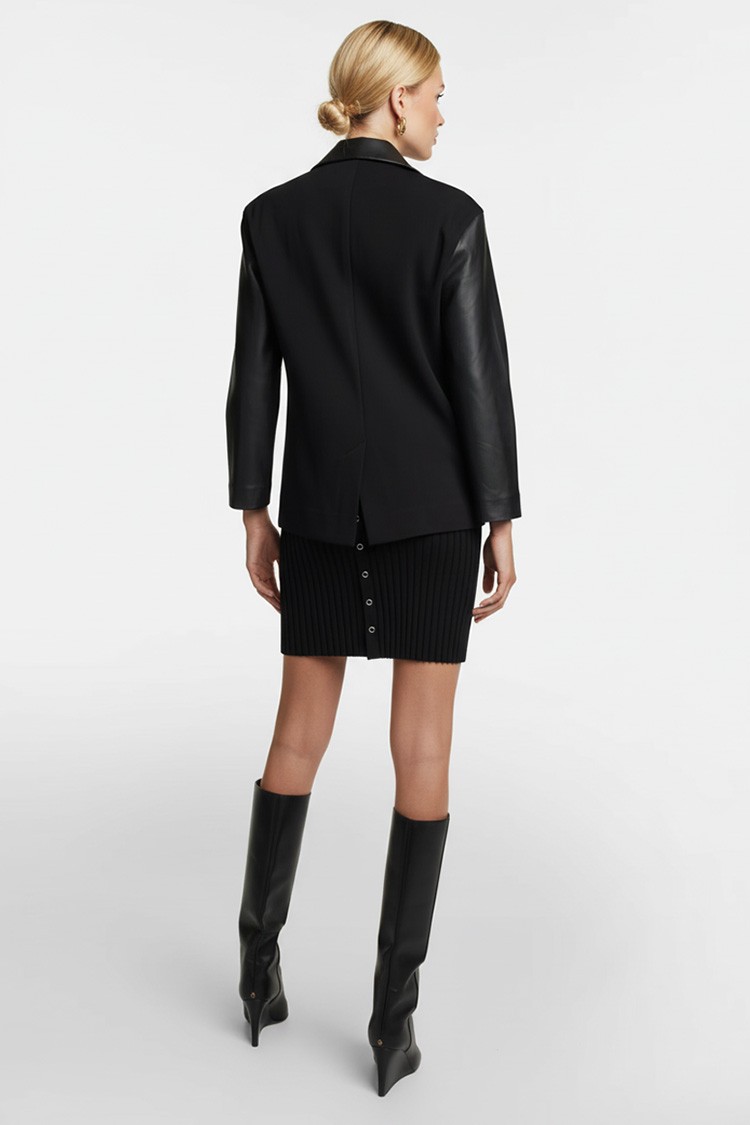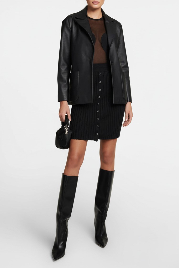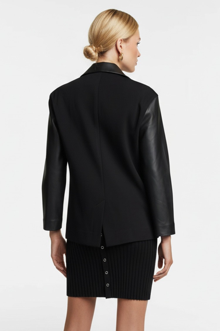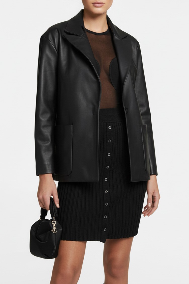 - Elegantno žensko sako izrađeno od visokokvalitetne eko kože u klasičnoj crnoj boji.