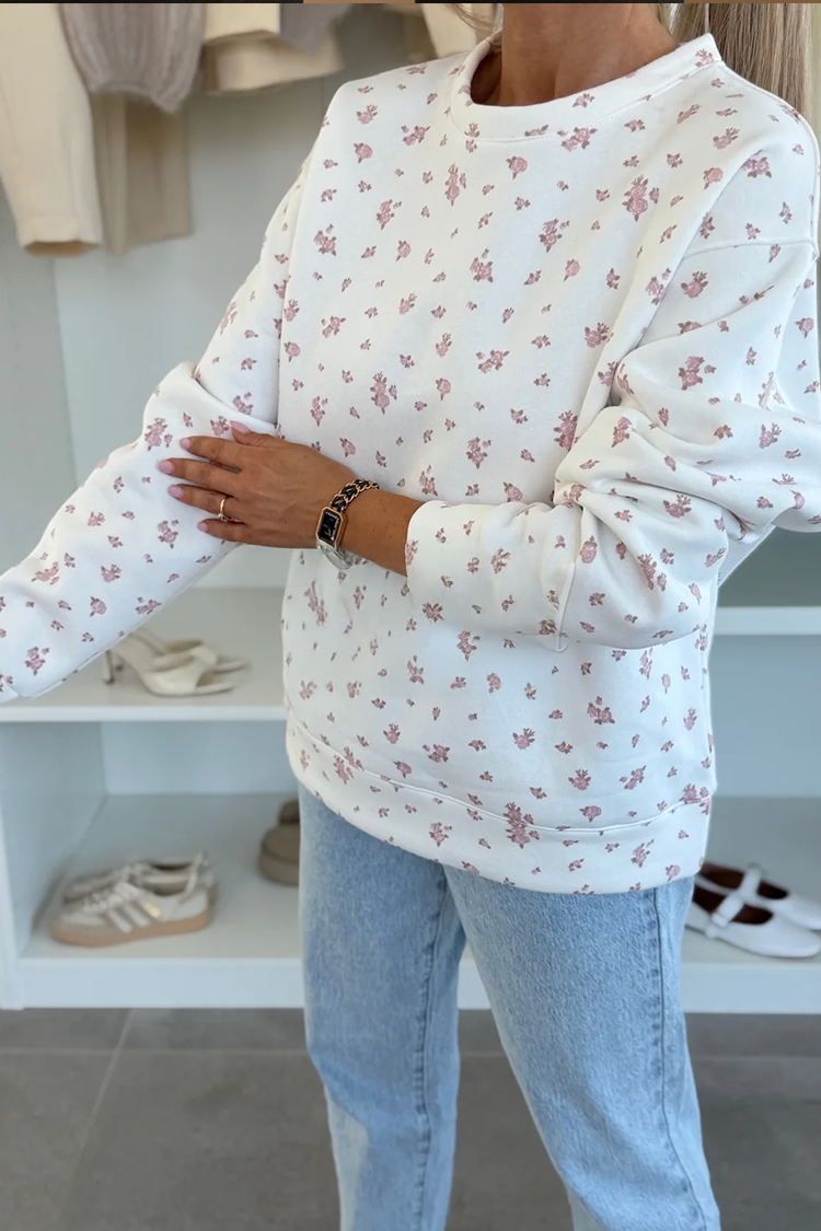 - Model ima standardni kroj, okrugli izrez i cvjetni uzorak u bijeloj boji.