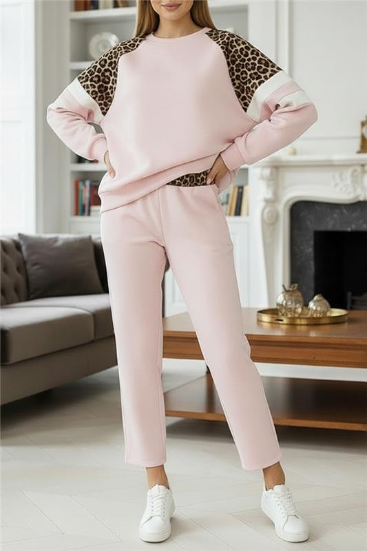 - Bluza ima okrugli izrez i udoban kroj, a donji dio ima visoki struk i duge nogavice.