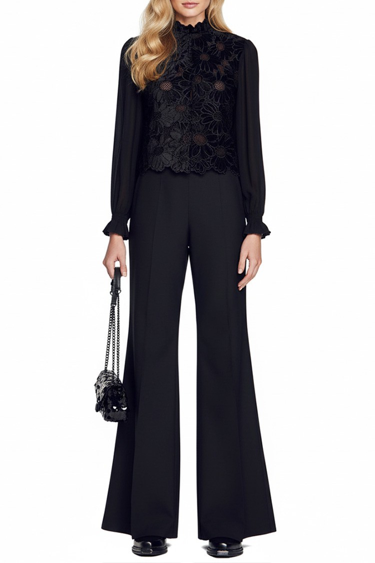 - Elegantna bluza u klasičnoj crnoj boji s prekrasnom cvjetnom čipkom s baršunastim efektom.