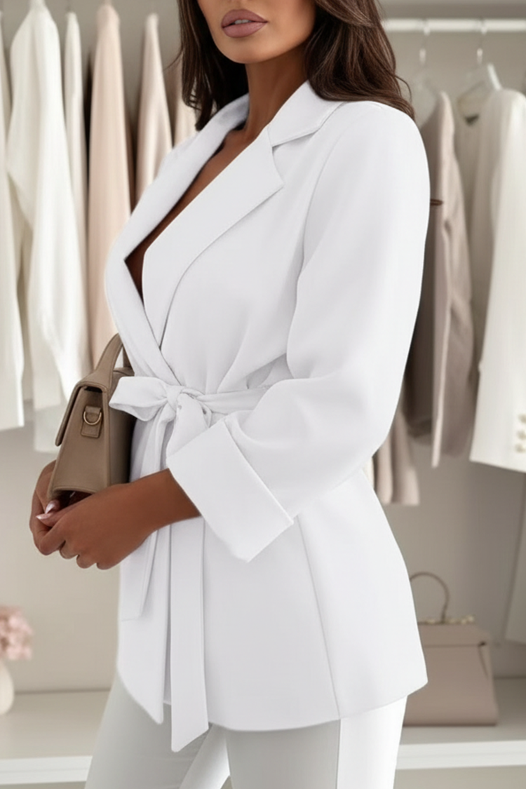 - Spojite stil s udobnošću! Model ima udoban kroj, elegantan ovratnik s reverom i remen od iste tkanine.