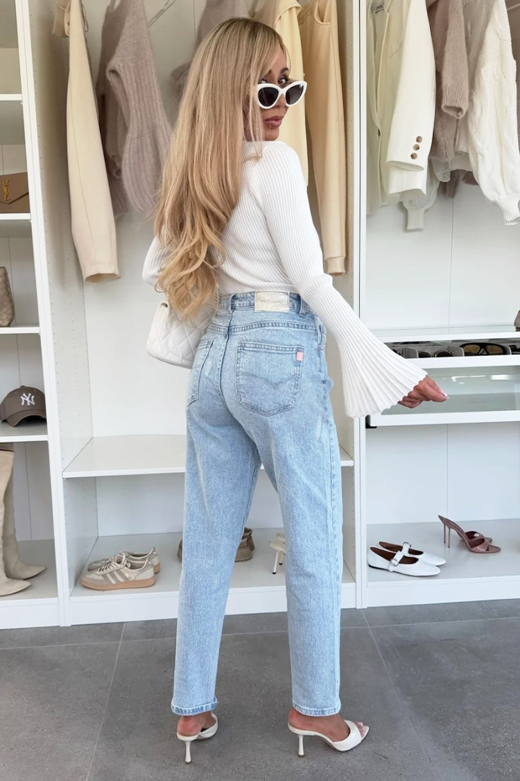 - Model ima pripijeni kroj, okrugli izrez i spektakularne, duge rukave.