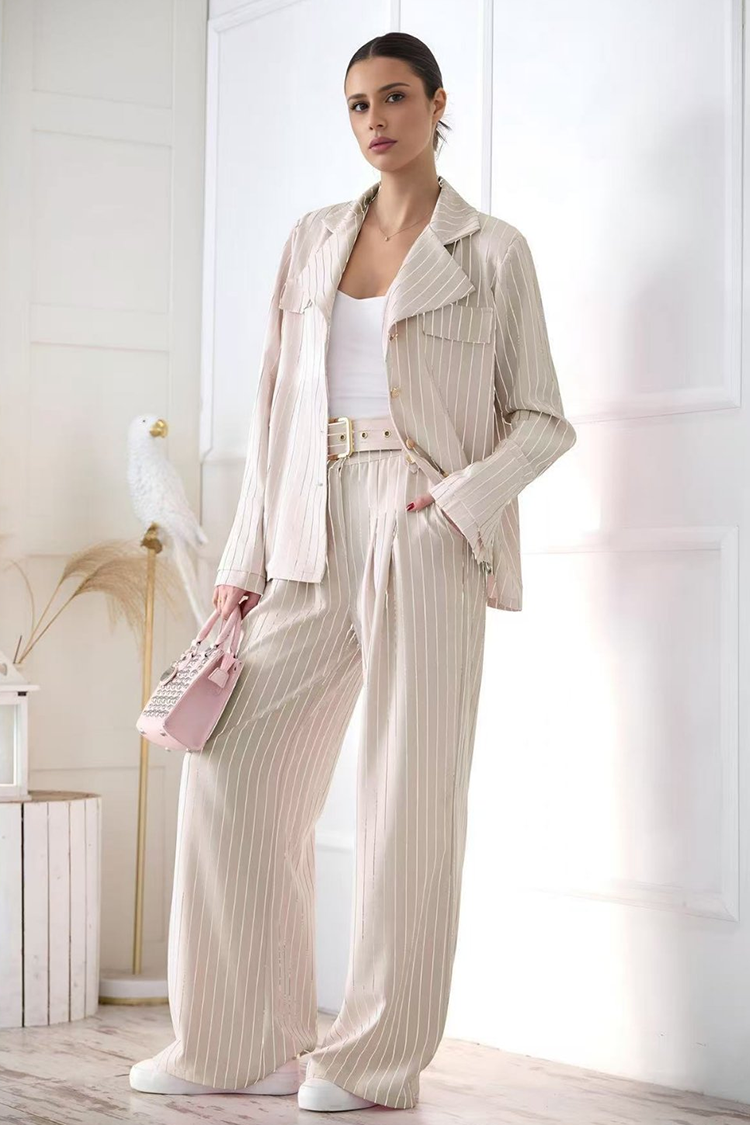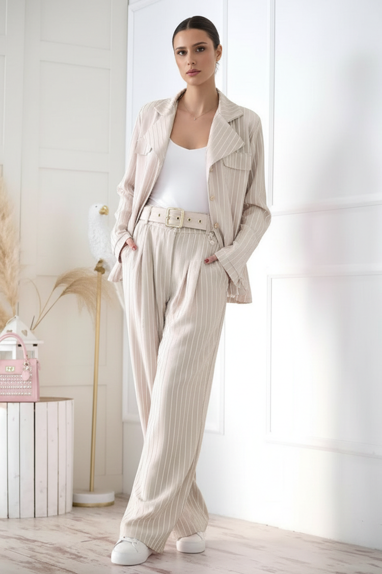 - Za vaš besprijekoran izgled odaberite ovaj trodijelni set s prugastim uzorkom.