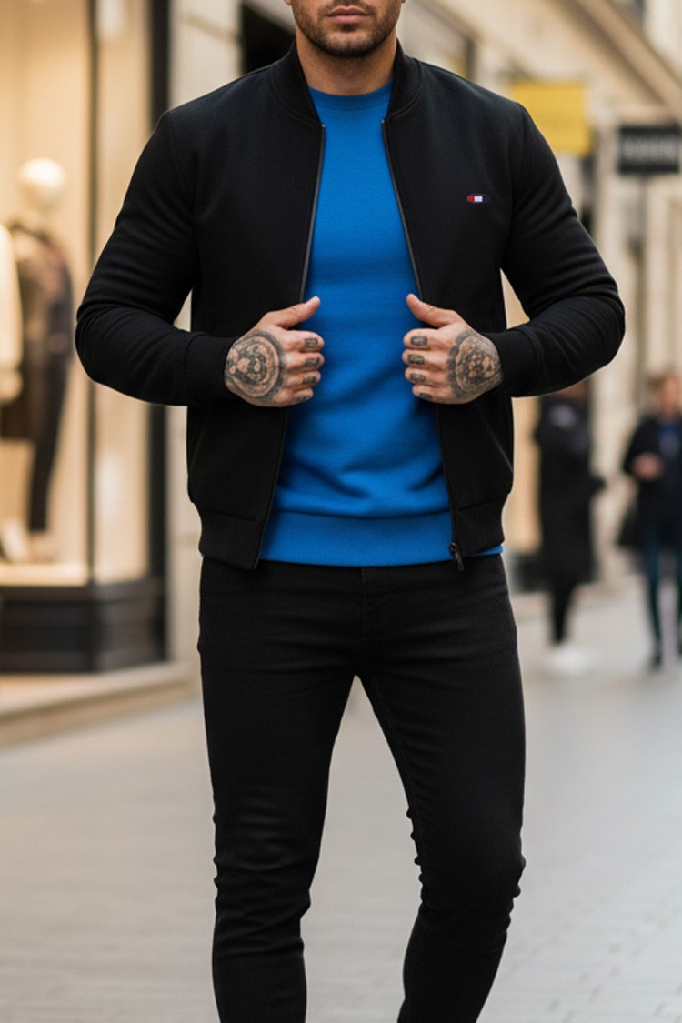 - Praktična i udobna muška dukserica s visokim ovratnikom u crnoj boji, prikladna za svakodnevni život, sport ili šetnju.