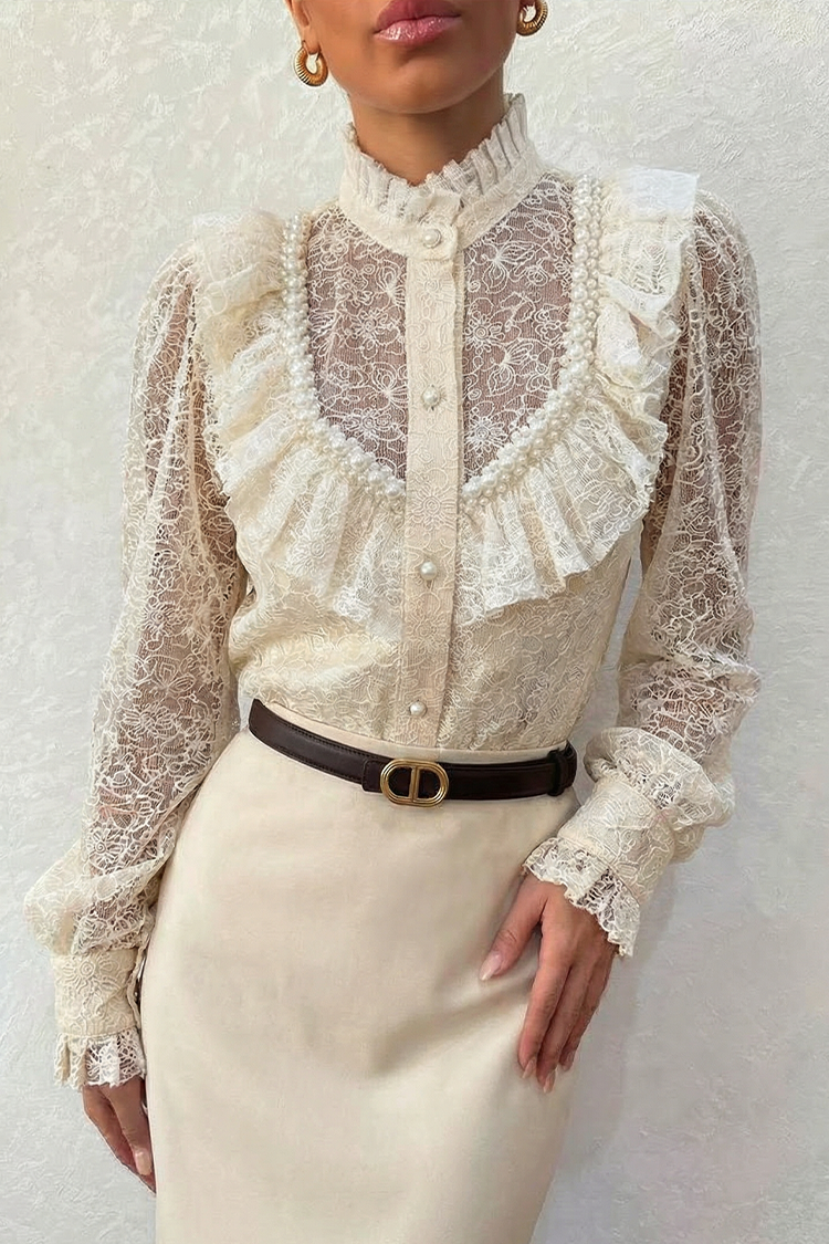 - Model ima gumbe cijelom dužinom, moderan dizajn te spektakularne volane, čipku i ukrasne bisere.