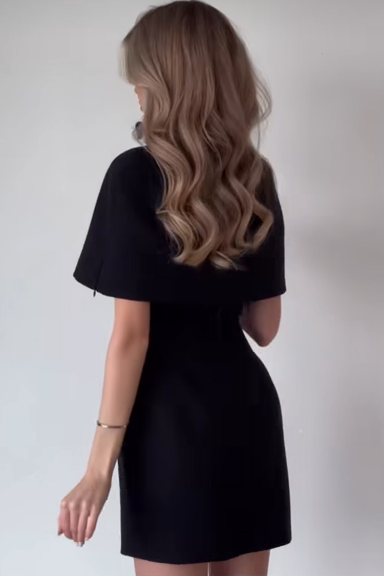 - Bolero ima moderan dizajn, a haljina ima udobne naramenice i kratku duljinu.