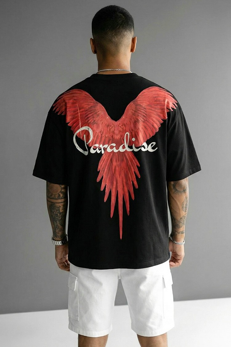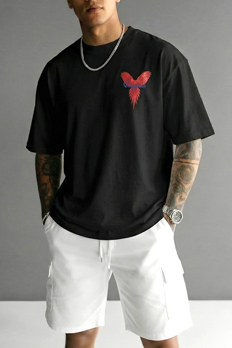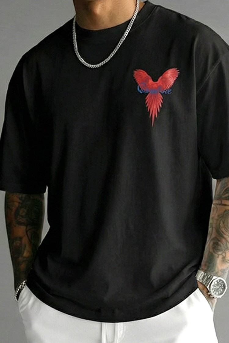 - Moderna muška majica s udobnim krojem i printom na prednjoj i stražnjoj strani, prikladna za svakodnevni život, šetnju ili kao dodatak vašem sportskom izgledu.