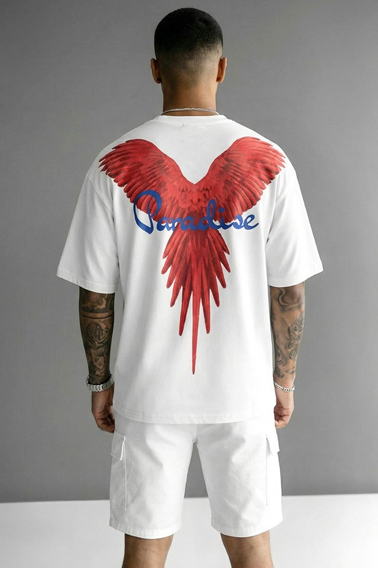 - Moderna muška majica s udobnim krojem i printom na prednjoj i stražnjoj strani, prikladna za svakodnevni život, šetnju ili kao dodatak vašem sportskom izgledu.