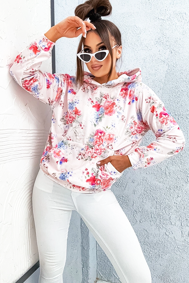 - Moderna ženska dukserica s kapuljačom i cvjetnim uzorkom, prikladna za vašu trendi svakodnevicu.