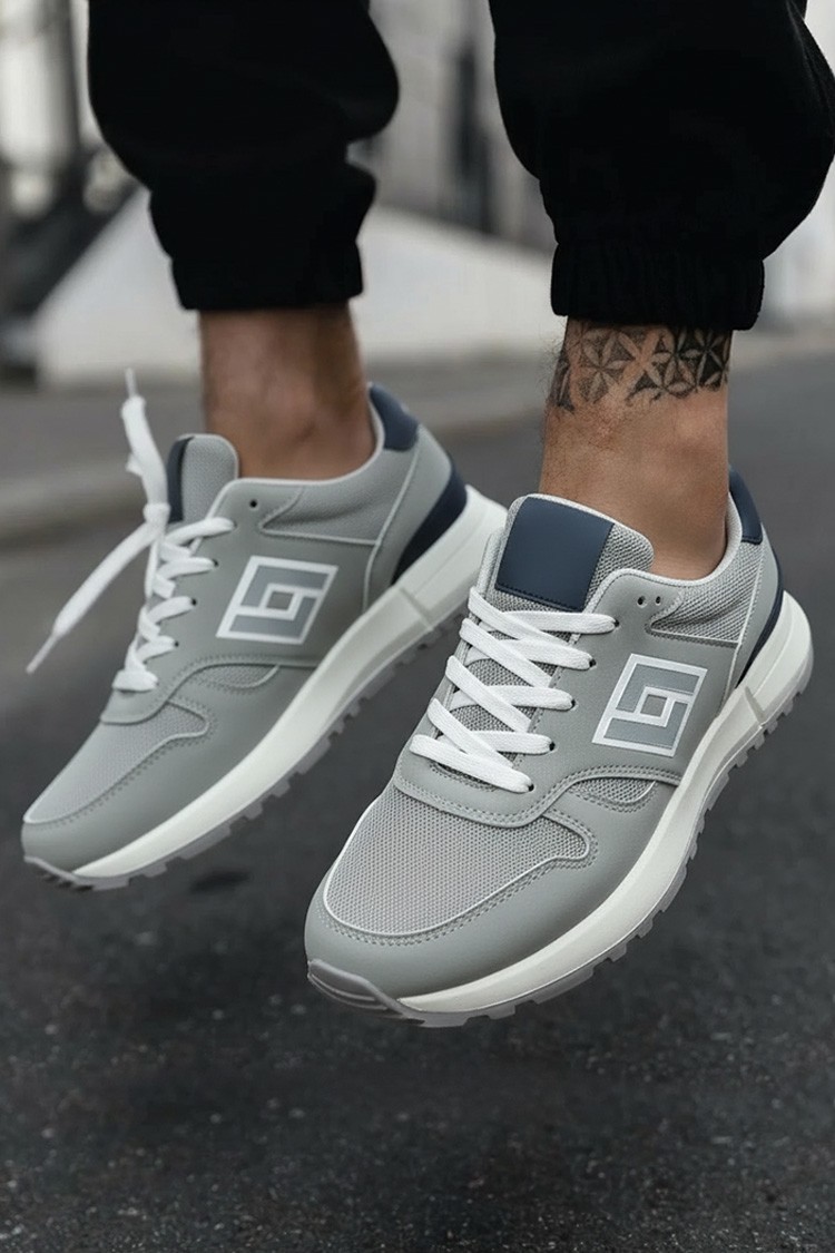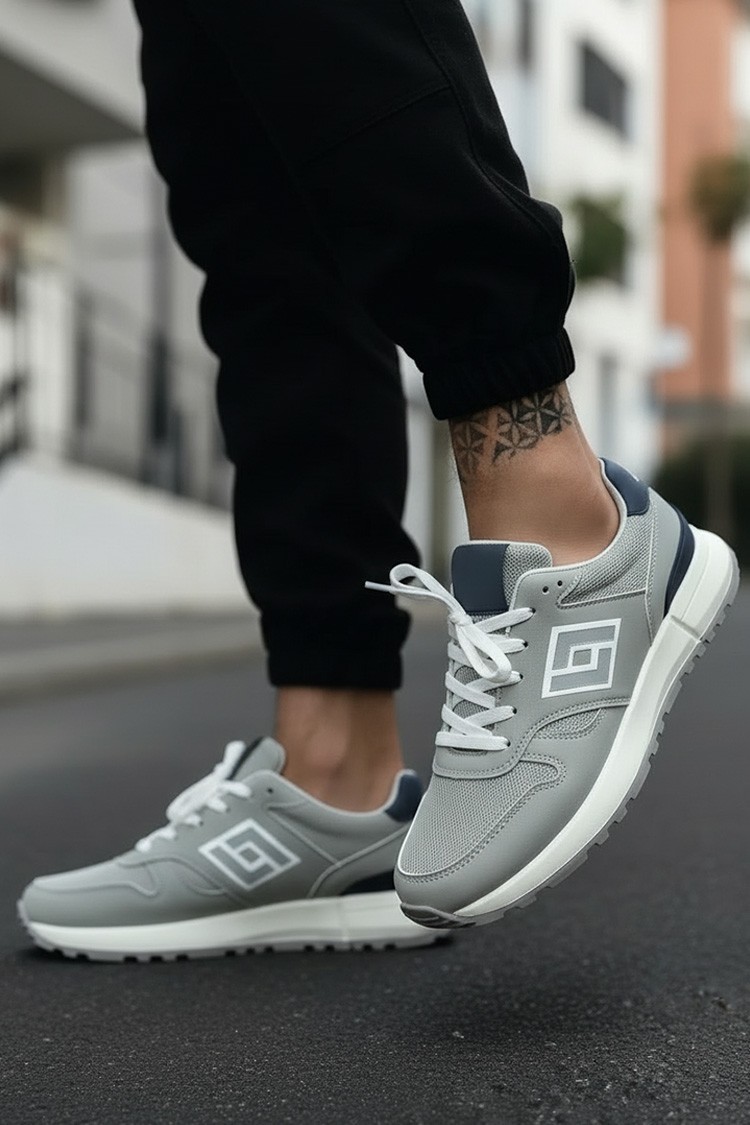 - Muške tenisice u sivoj boji, prikladne za svakodnevni život, sport ili šetnju.