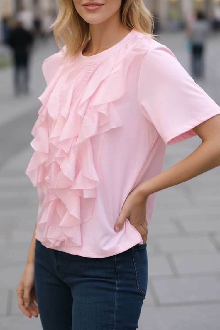 - Model ima kratke rukave, okrugli izrez i udoban kroj.