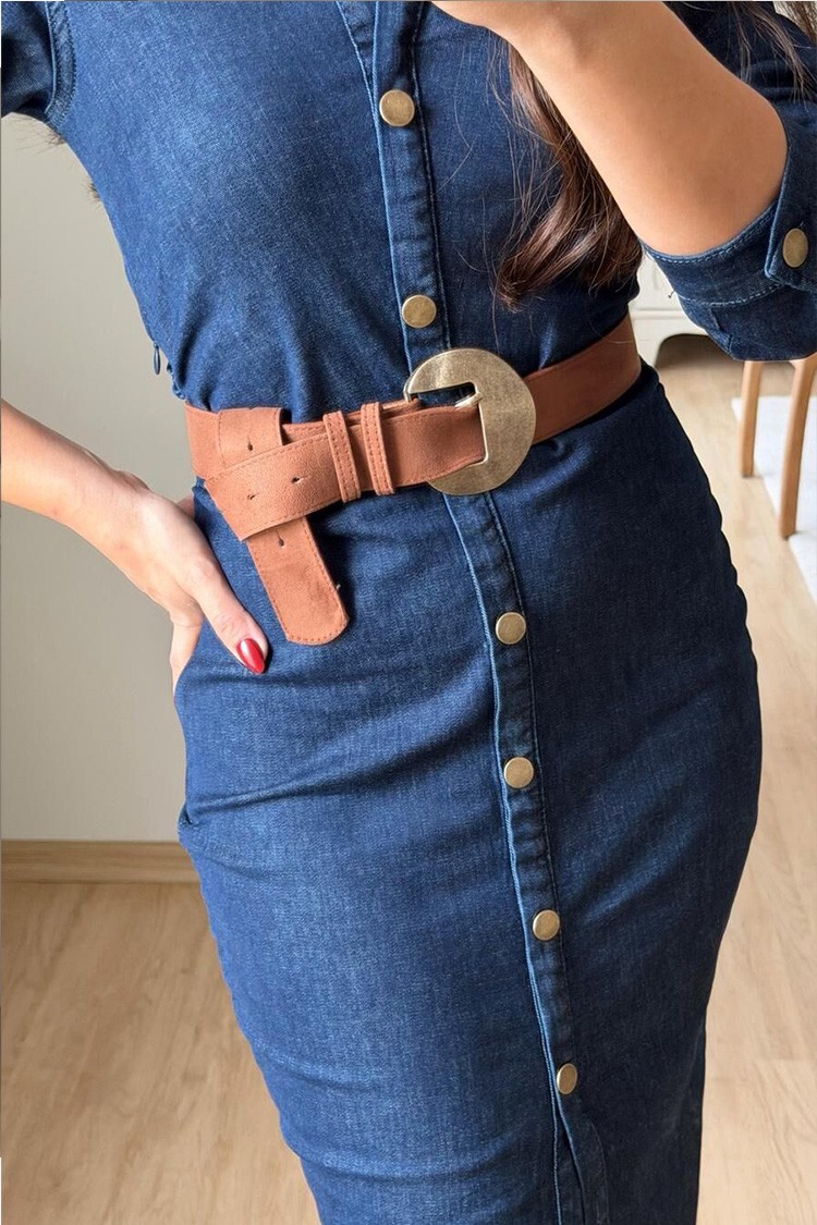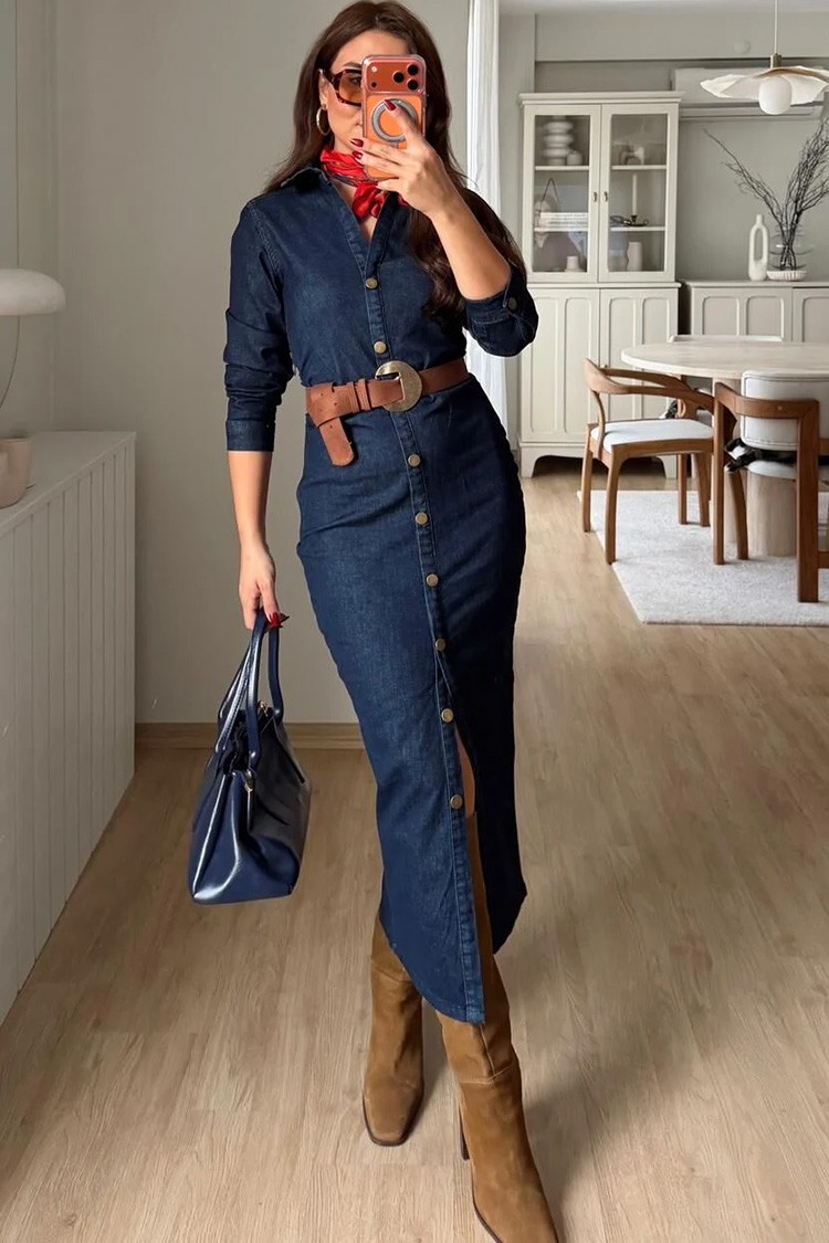 - Za nježan i moderan izgled odaberite ovu traper haljinu, savršenu za svakodnevni život.