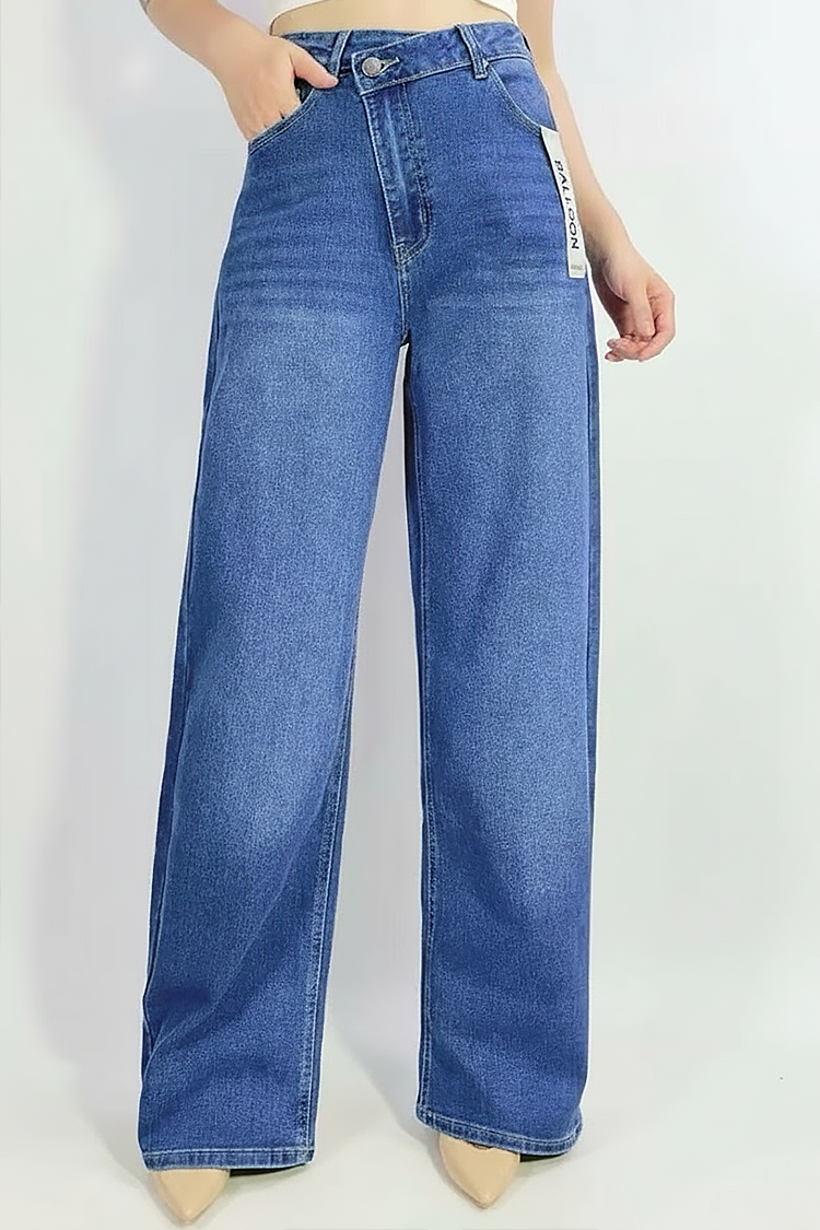 - Model ima visoki struk i prošireni kroj te asimetrično kopčanje.