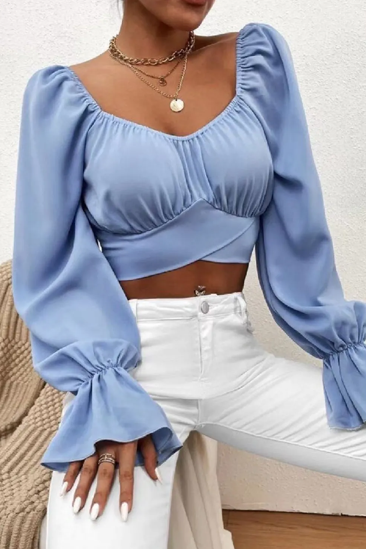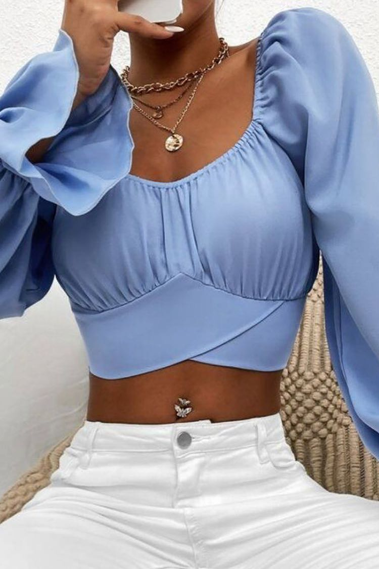 - Model ima seksi dizajn, duge, puf rukave, atraktivan dekolte i skraćenu duljinu.