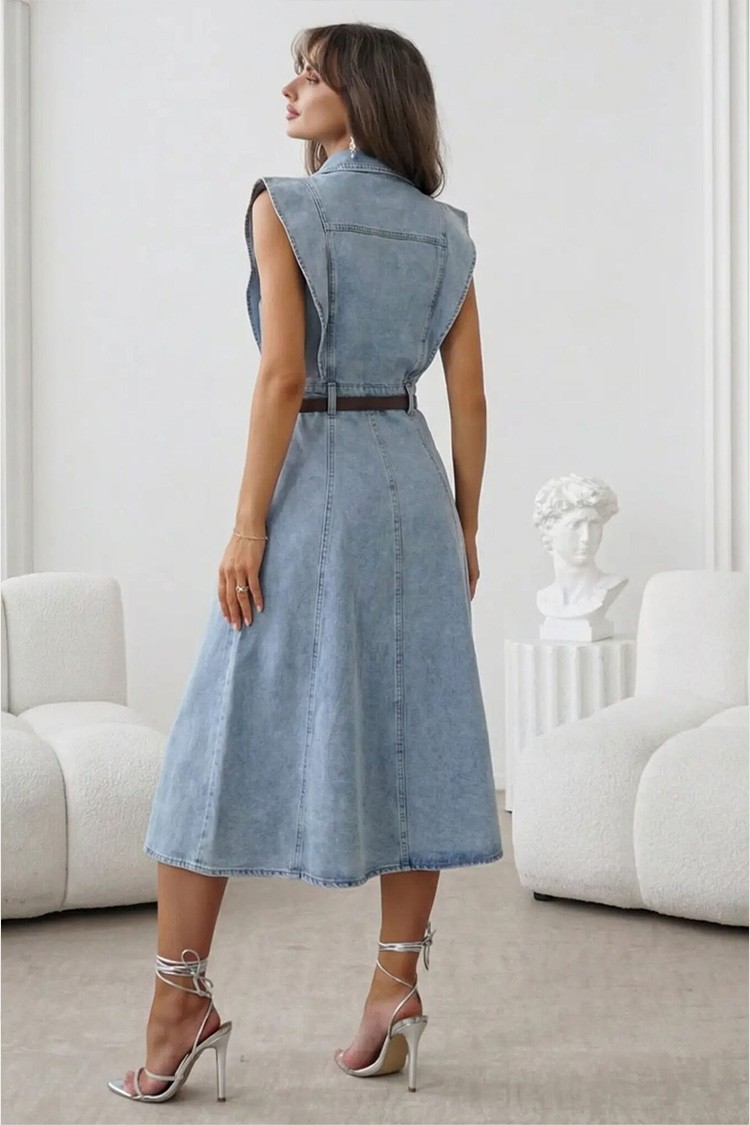 - Za nježan i moderan izgled odaberite ovu traper haljinu, savršenu za svakodnevni život.
