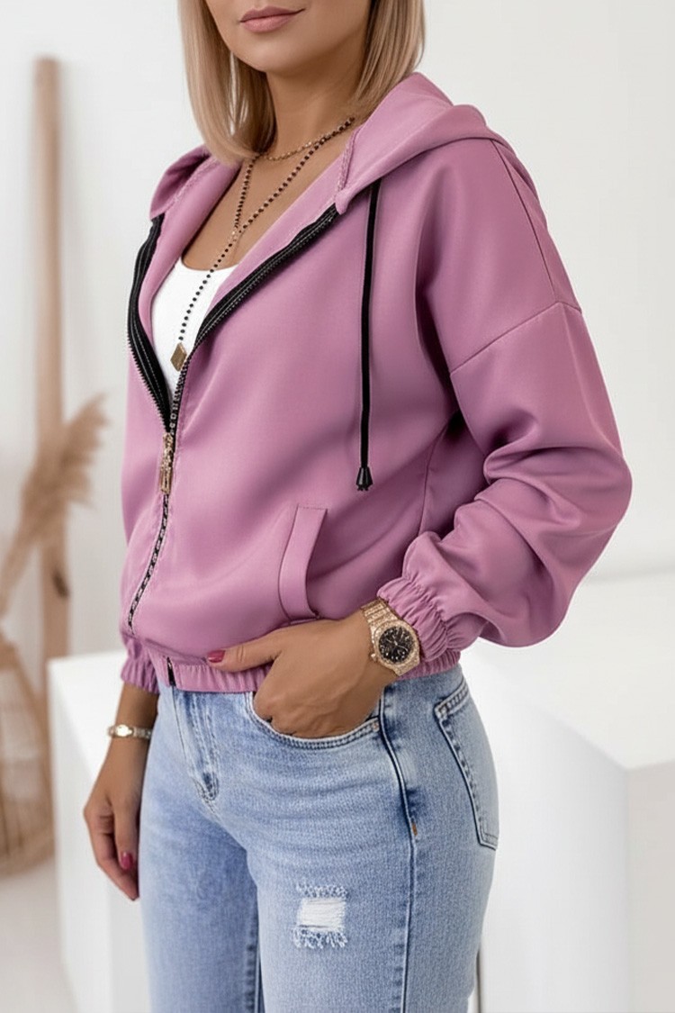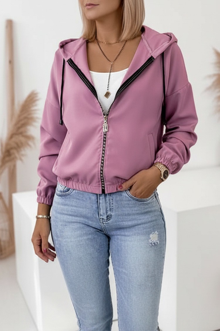 - Model ima klasičan kroj, bočne džepove, kapuljaču i kopča se patentnim zatvaračem cijele duljine.