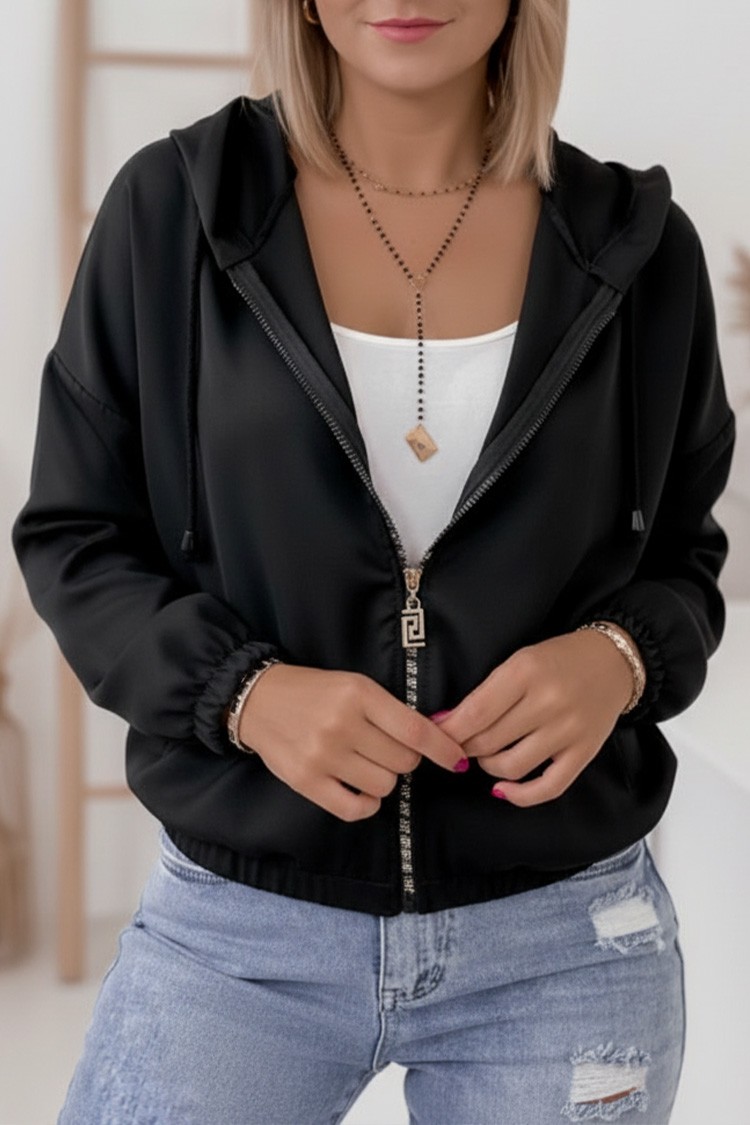 - Model ima klasičan kroj, bočne džepove, kapuljaču i kopča se patentnim zatvaračem cijele duljine.