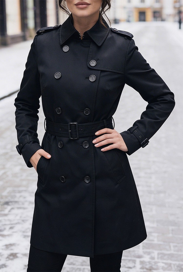 - Elegantni trench kaput s ovratnikom i remenom u crnoj boji koji morate imati u svom ormaru.