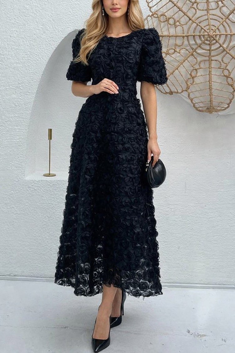 - Model ima elegantan kroj, kratke, naf rukave i cvijeće cijelom dužinom.