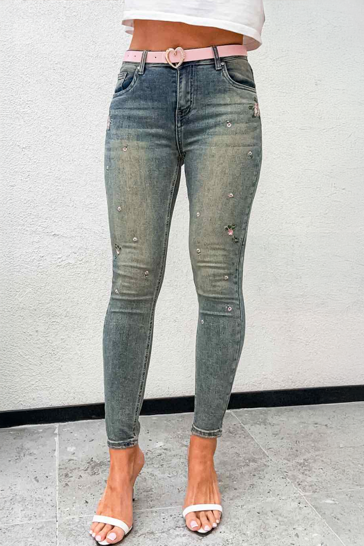 - Model ima visoki struk, pripijeni kroj, izblijedjeli efekt i vez cijelom dužinom.
