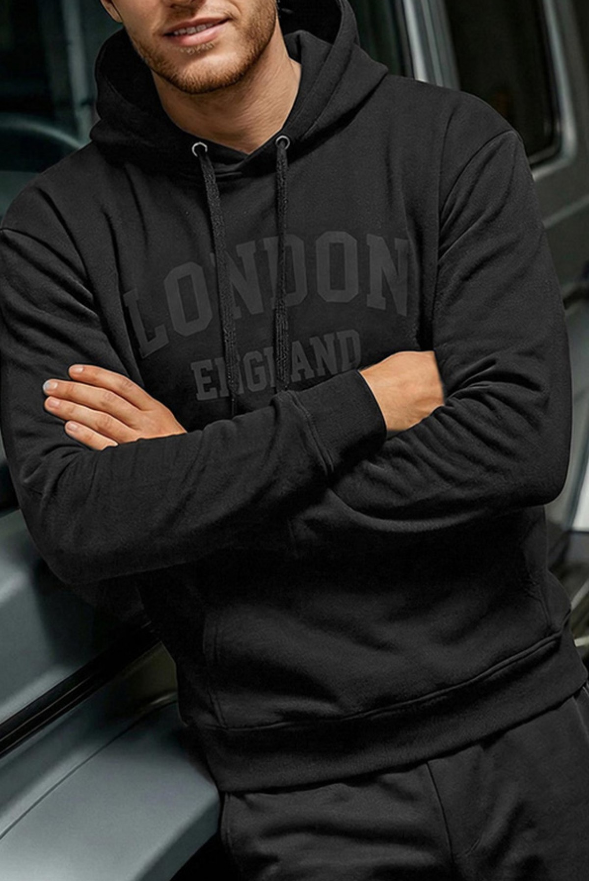 - Udobna i moderna muška dukserica s kapuljačom i džepovima, prikladna za svakodnevni život ili šetnju.