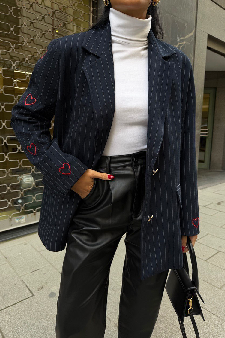 - Spojite stil s udobnošću! Model ima predimenzionirani dizajn, ovratnik, džepove, prugasti uzorak i srca.