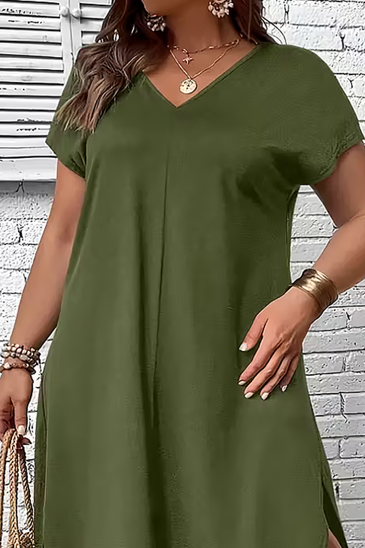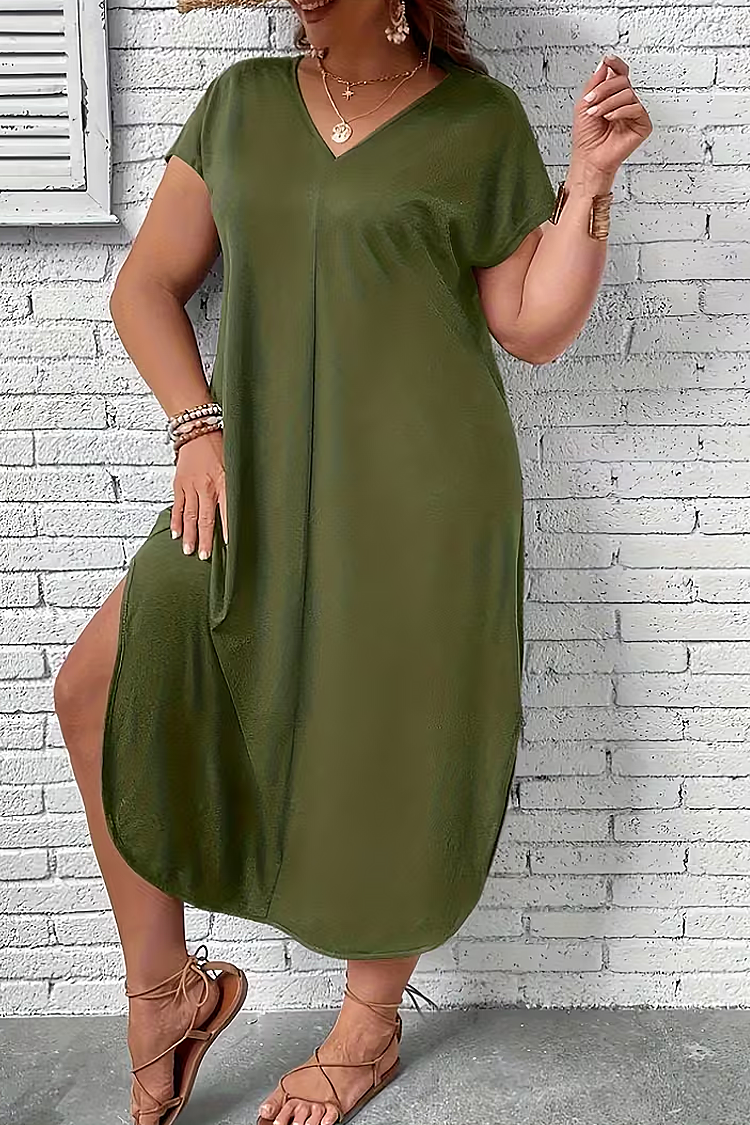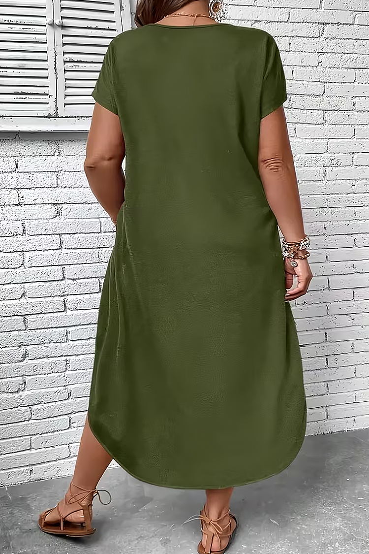 - Midi haljina s jednobojnim uzorkom i jednostavnim dizajnom, prikladna za svakodnevni život.
