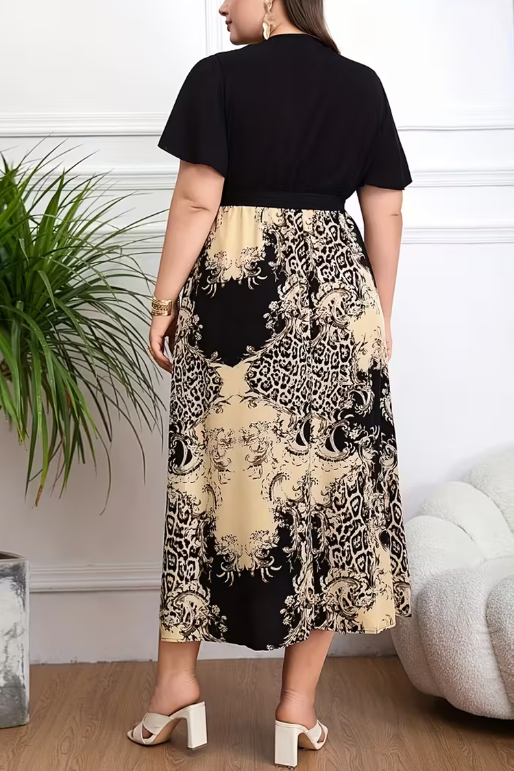 - Midi haljina s remenom u struku i dvobojnim uzorkom, prikladna za vašu elegantnu svakodnevicu.
