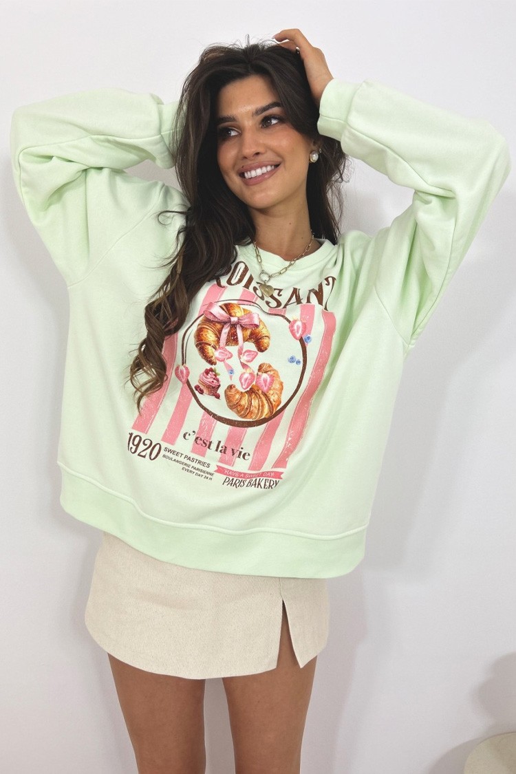- Model ima duge rukave, širok kroj i spektakularan, šareni print sprijeda.