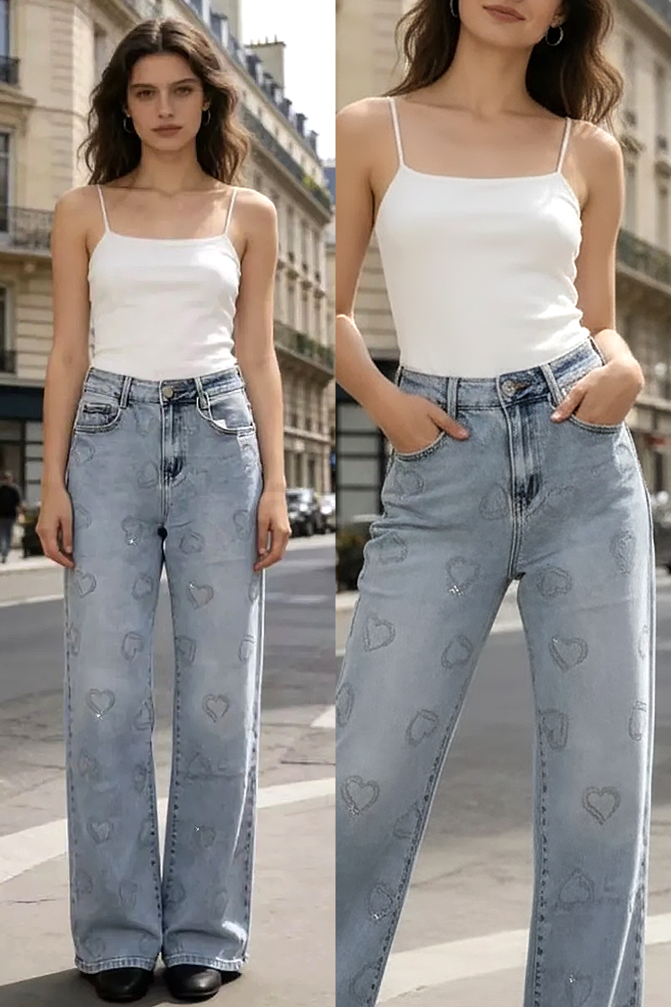 - Model ima visoki struk, prošireni kroj i atraktivan uzorak srca cijelom dužinom.